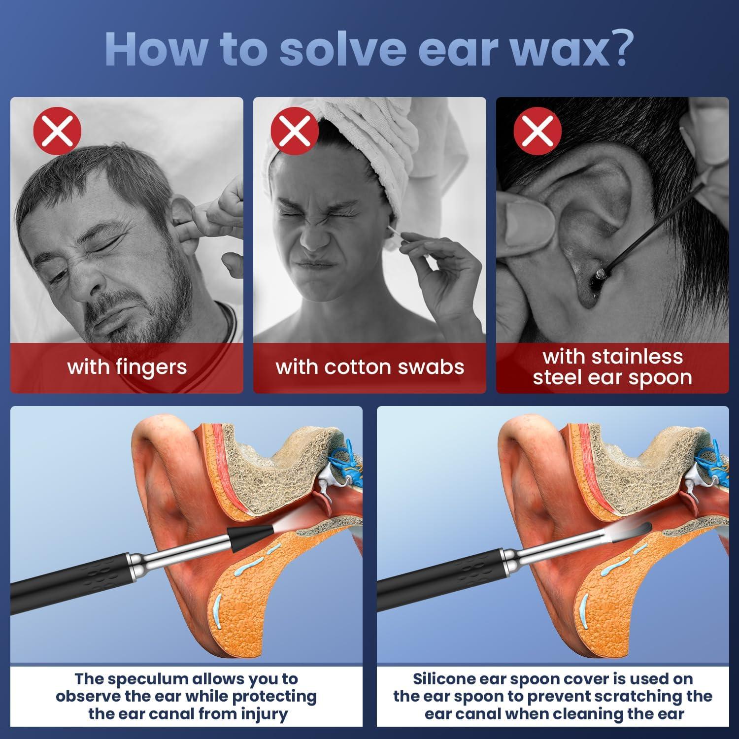 Digital Otoscope, 1080p HD Ear Camera with Ear Wax Removal Tools, Video Ear Scope Otoscope with Light, Compatible with iPhone15, iPad, Android Phone, USB, Ear Picks