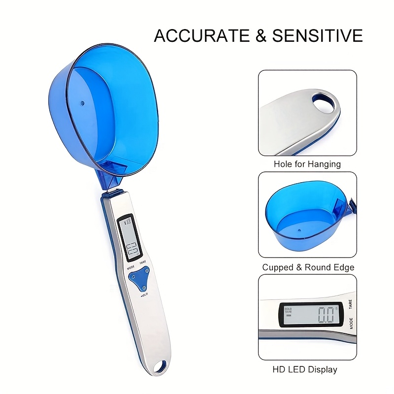 1pc Digital measuring spoon scale, 0.1-500 grams electronic kitchen food weighing spoon scale, detachable high-precision gram measuring spoon with LCD display weighing unit g/oz/gn/ct, with three types of spoon heads: large, medium and small