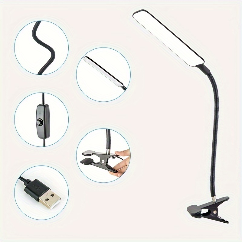 1pc DLXTECH LED Desk Lamp with Flexible Gooseneck & Clamp Base, USB-Powered Adjustable Arm Task Light, Eye-Caring Glare-Free Lighting for Home Office, Study, Crafting – White/Black, Study Space Lighting | Modern Desk Light, Desk Lamps for Home Office