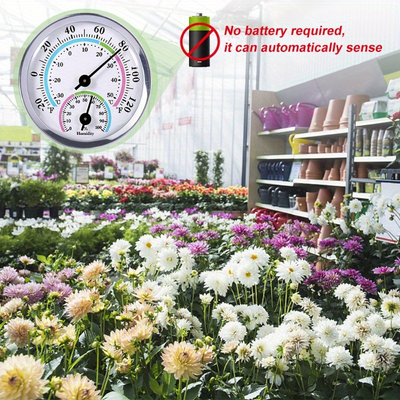 [2-in-1 Thermometer] 2-in-1 Thermometer and Hygrometer 1pc | Aluminum Alloy, Battery-Free | Ideal for Greenhouse Temperature and Humidity