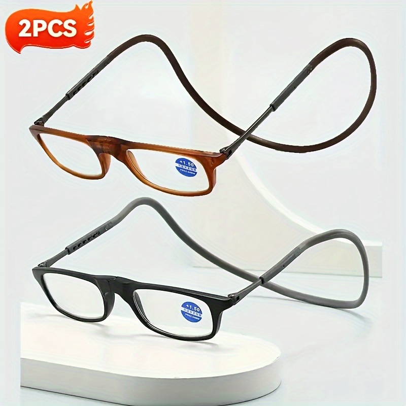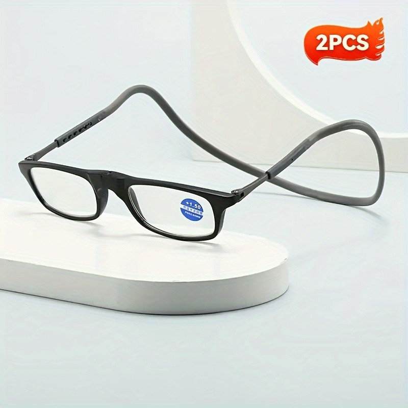 2pcs Magnetic Anti-Lost Glasses with Neck Hanging Strap & Telescopic Legs – Foldable Adjustable Magnification Eyewear (1.0-3.0), Anti-Slip Design, Compatible with Glasses for Reading/Electronics – Ideal Gift for Men & Women, Smartphone