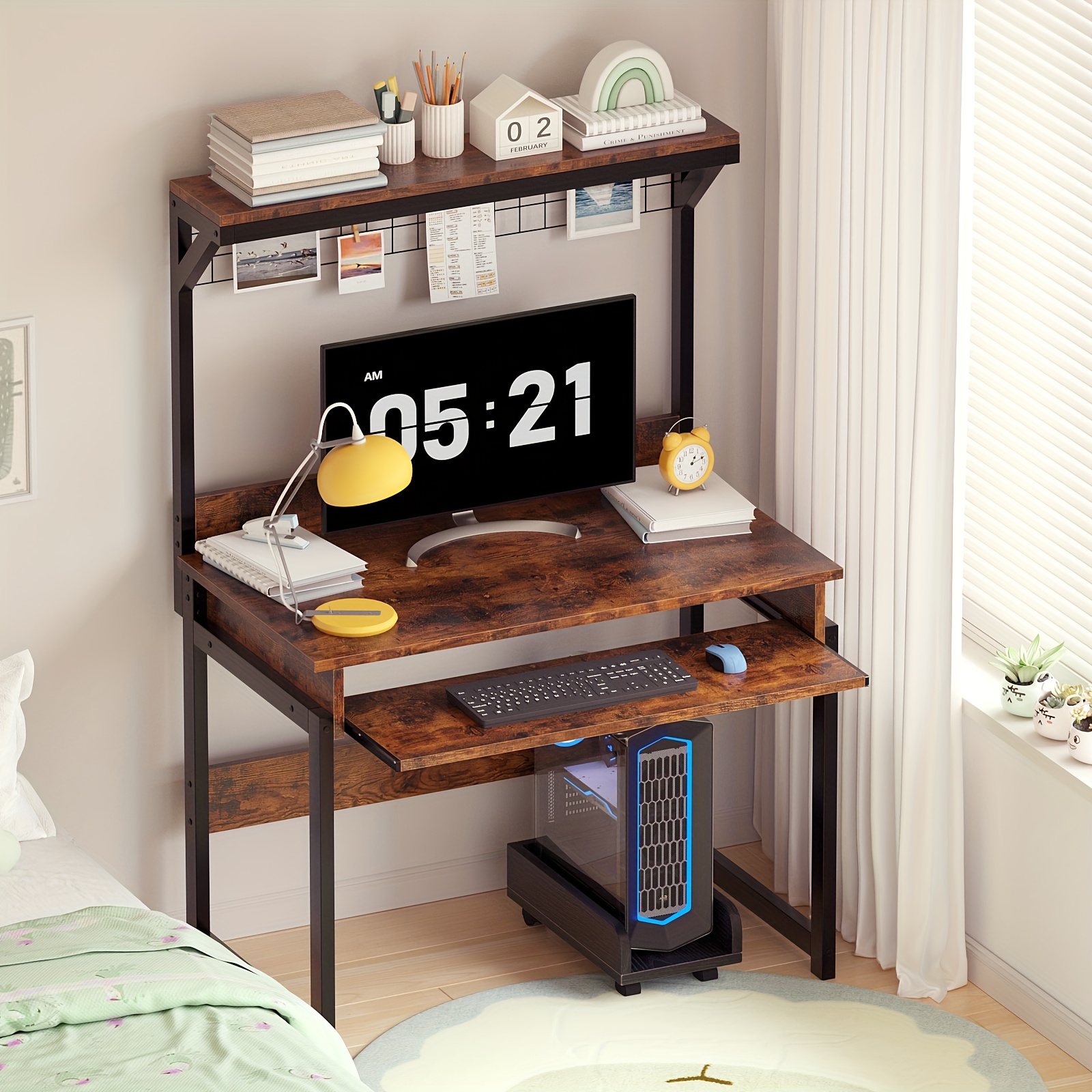 26”Home Office Desk For Space Saving, Small Computer Desk, Office Space And Home Workstation, Desk With Keyboard Tray And Bookshelf, Computer Writing Desk, Home Laptop Computer Desk With Storage Shelves, Rustic Brown
