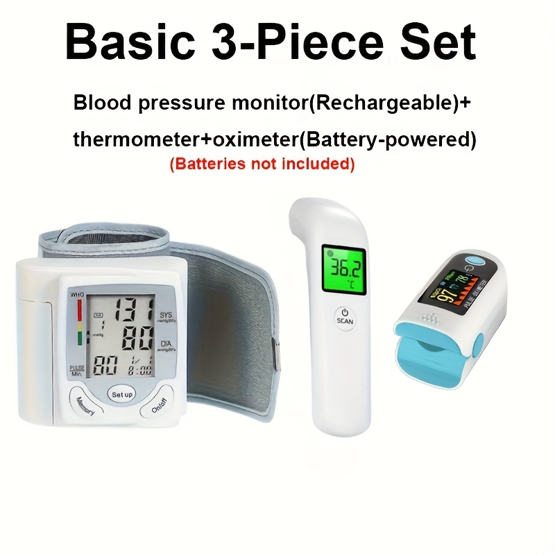 3pcs Set Basic, 1pc Electronic Blood Pressure Monitor | 1pc Adult Fingertip Pulse Oximeter Blood Oxygen Saturation Monitor Pulse Ox And 1 PcThermometer Set – Perfect Christmas Or Birthday Gift For Your Family