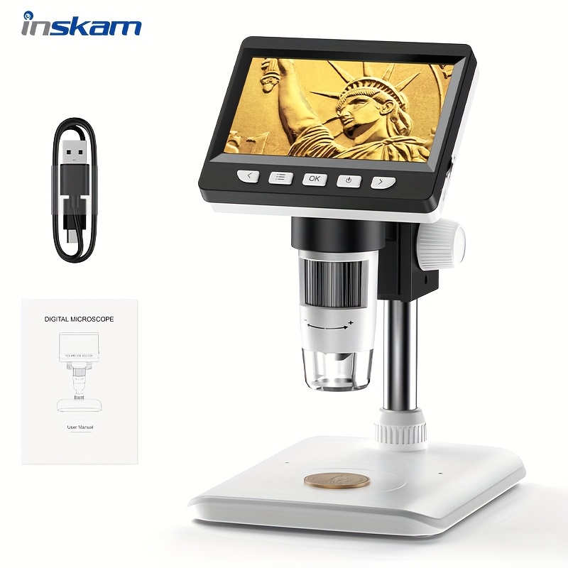 4.3-Inch Electronic Digital Microscope, 1000X Digital Microscope, 8 LED Lighting, Compatible with Computers, Can Be Used for Educational Research, Biological Observation, Coin Identification, Circuit Board Maintenance