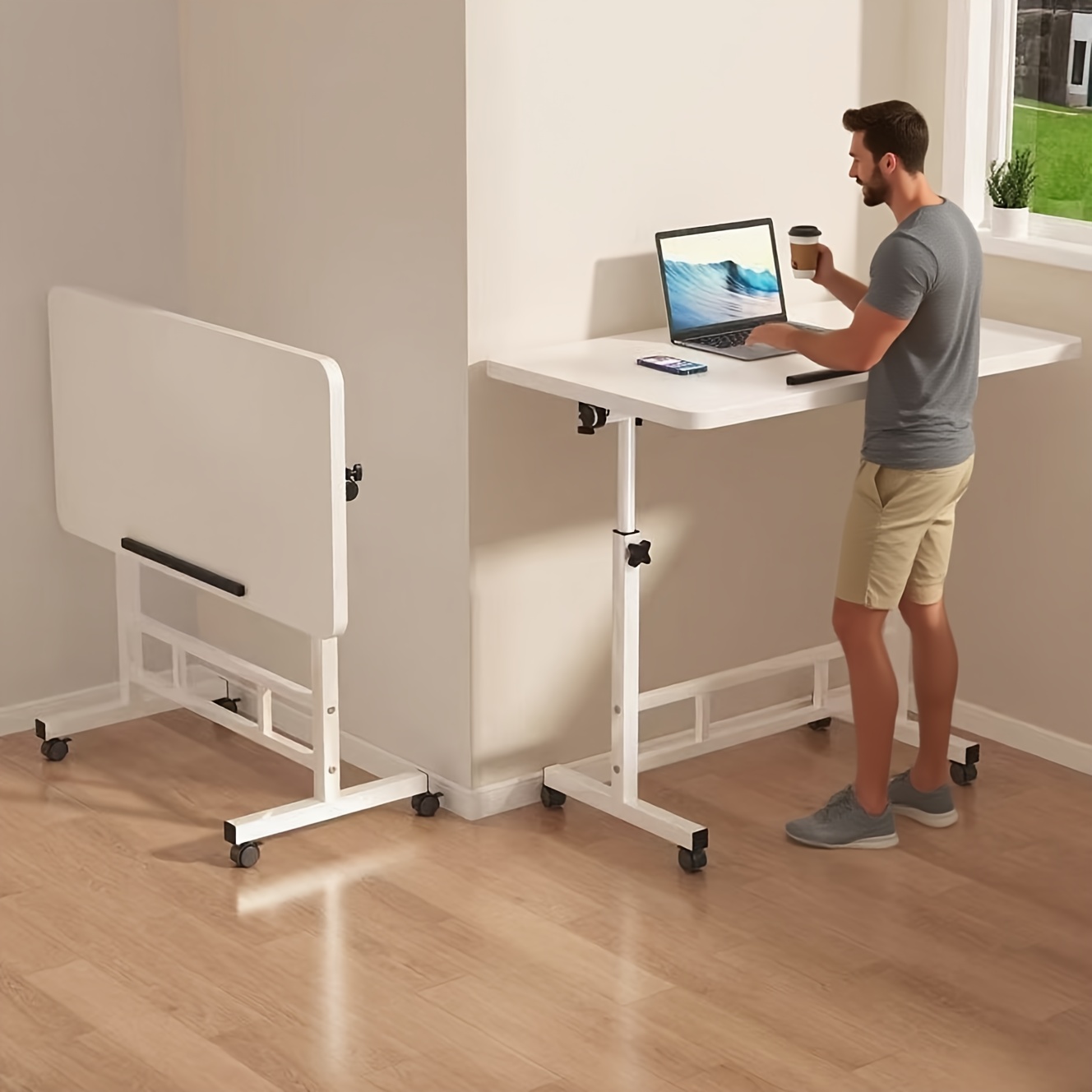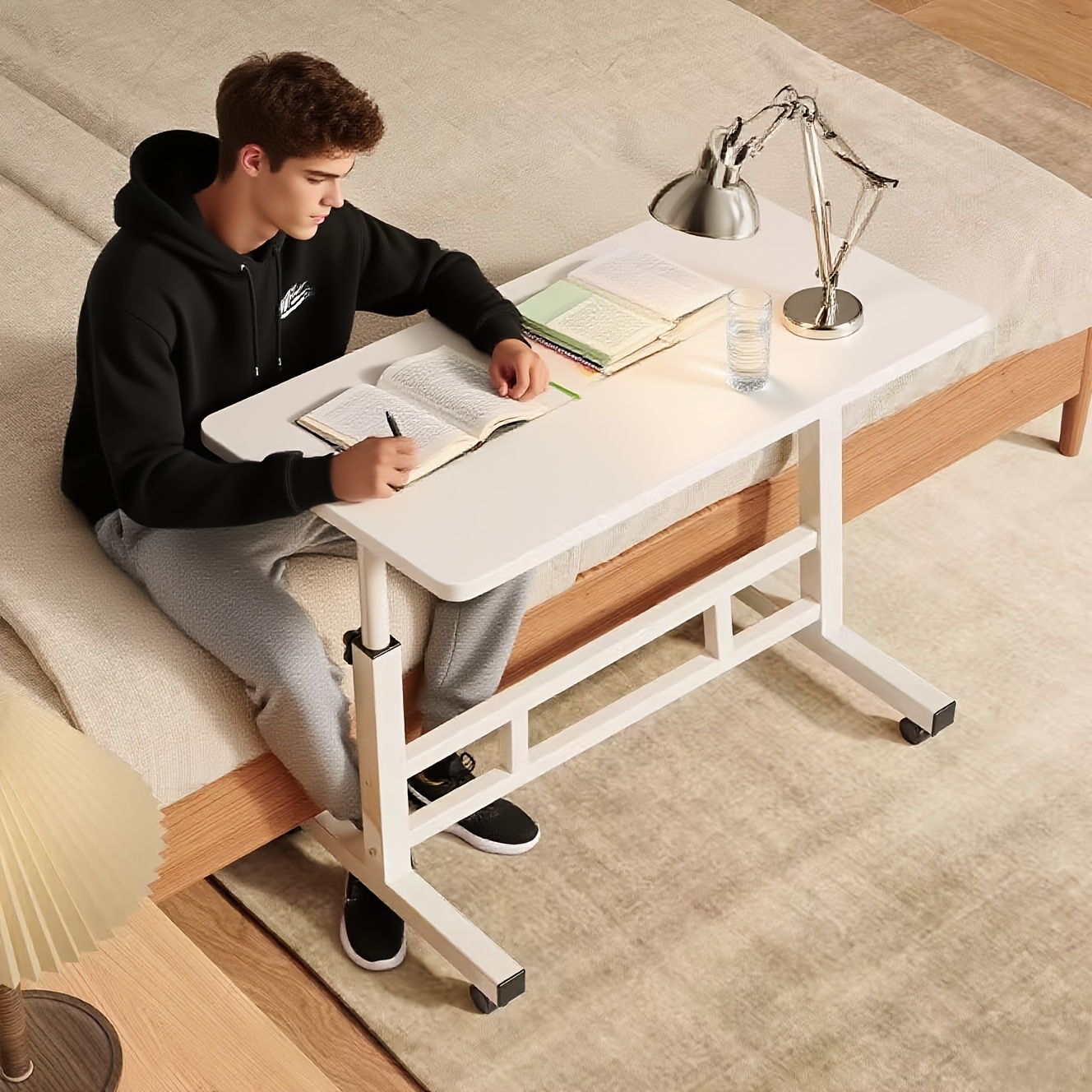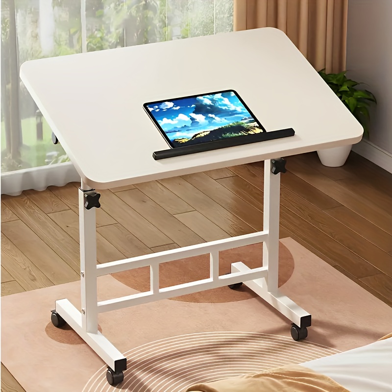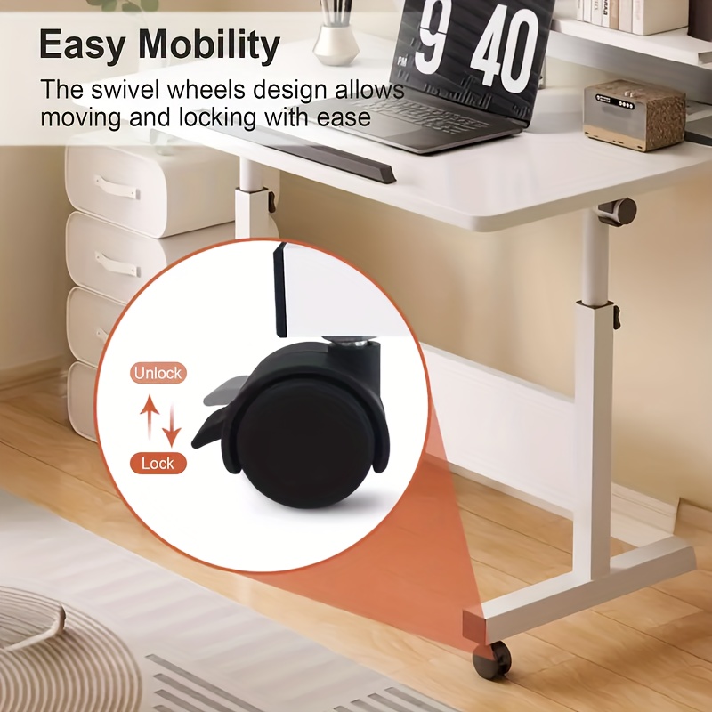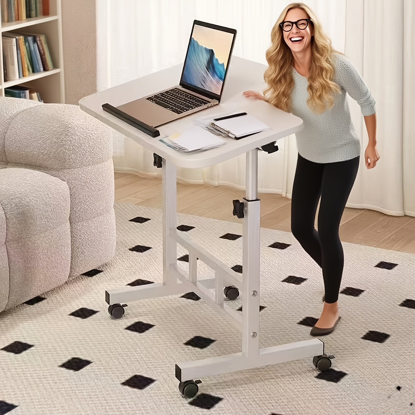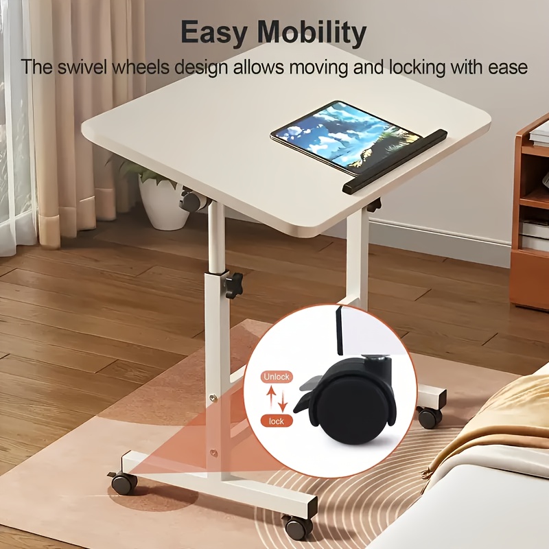 Adjustable Height Mobile Laptop Desk with Tiltable Desktop And Device Stand – Home Office Rolling Computer Workstation, Easy to Move, Suitable for Bedroom, Living Room Office, Etc.