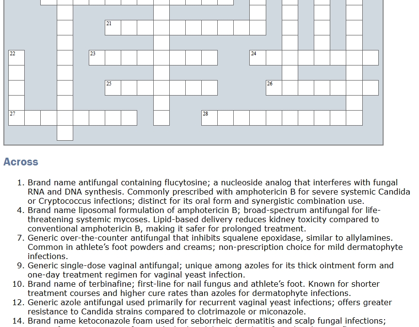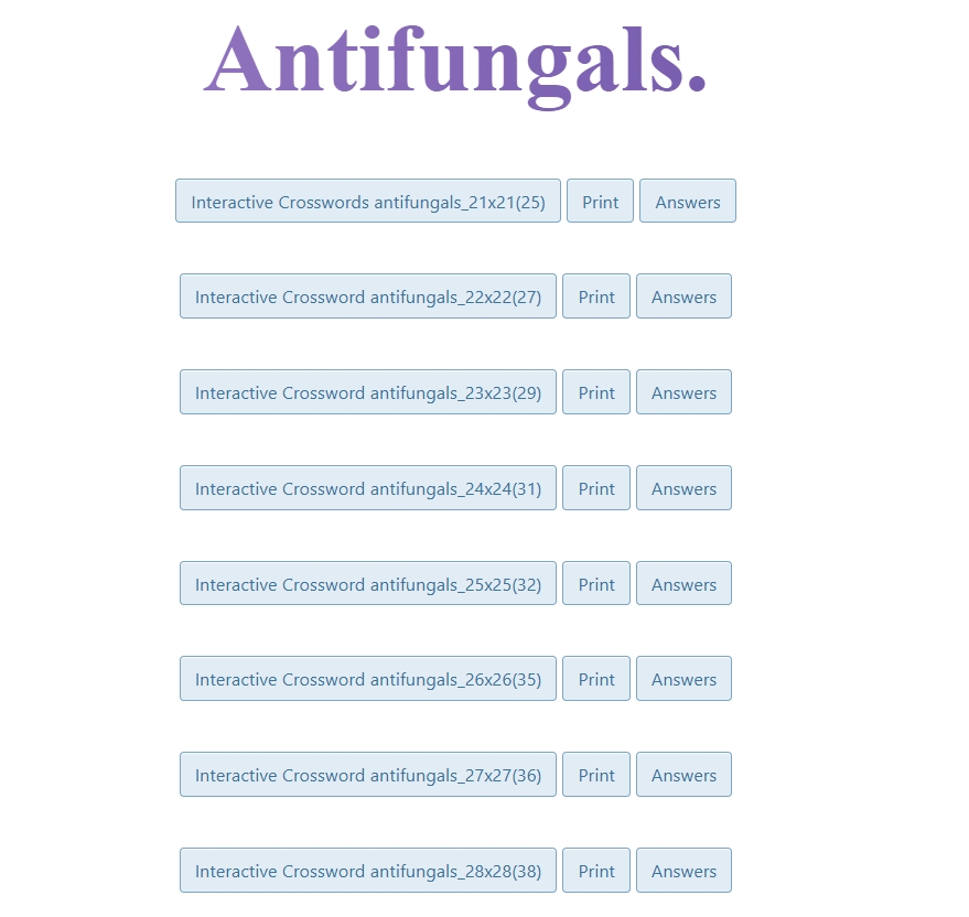 Interactive Pharmaceutical Crosswords – Antifungals.