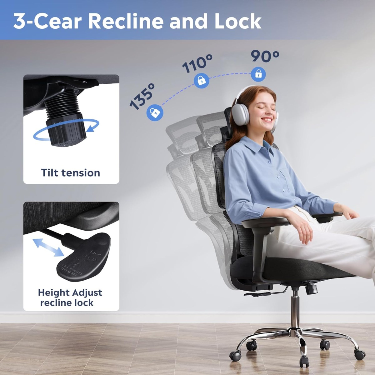 Be the first to review “Big and Tall Ergonomic Office Chair with Breathable Mesh Back & Adjustable Armrests – Heavy Duty Reclining Desk Chair with Lumbar Support, Headrest & 5-Wheel Base – White/Black, Ideal for Home Office & Professional Workspaces – Durable Polyurethane”
