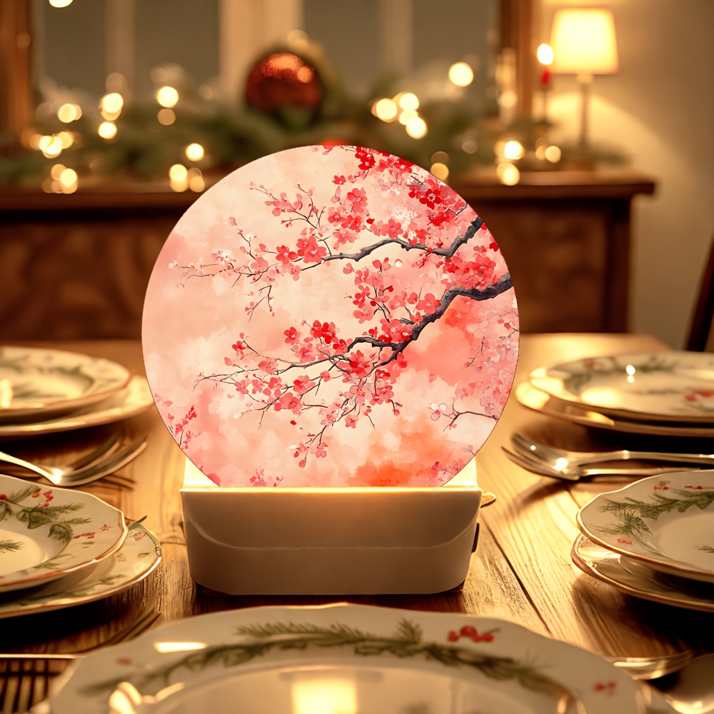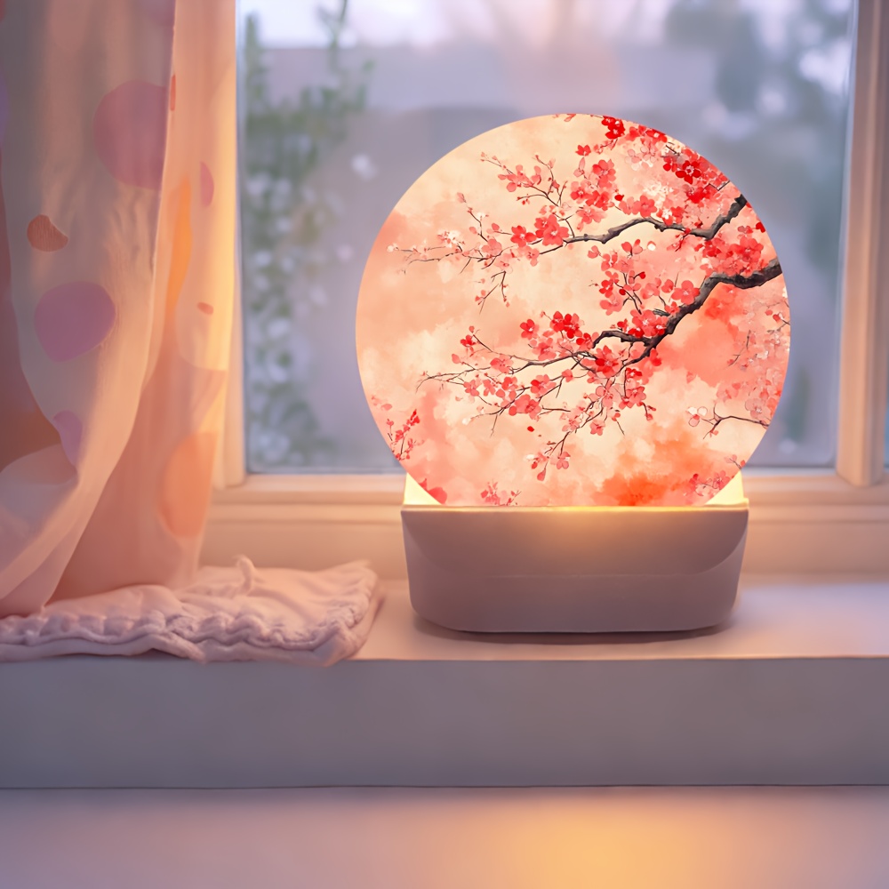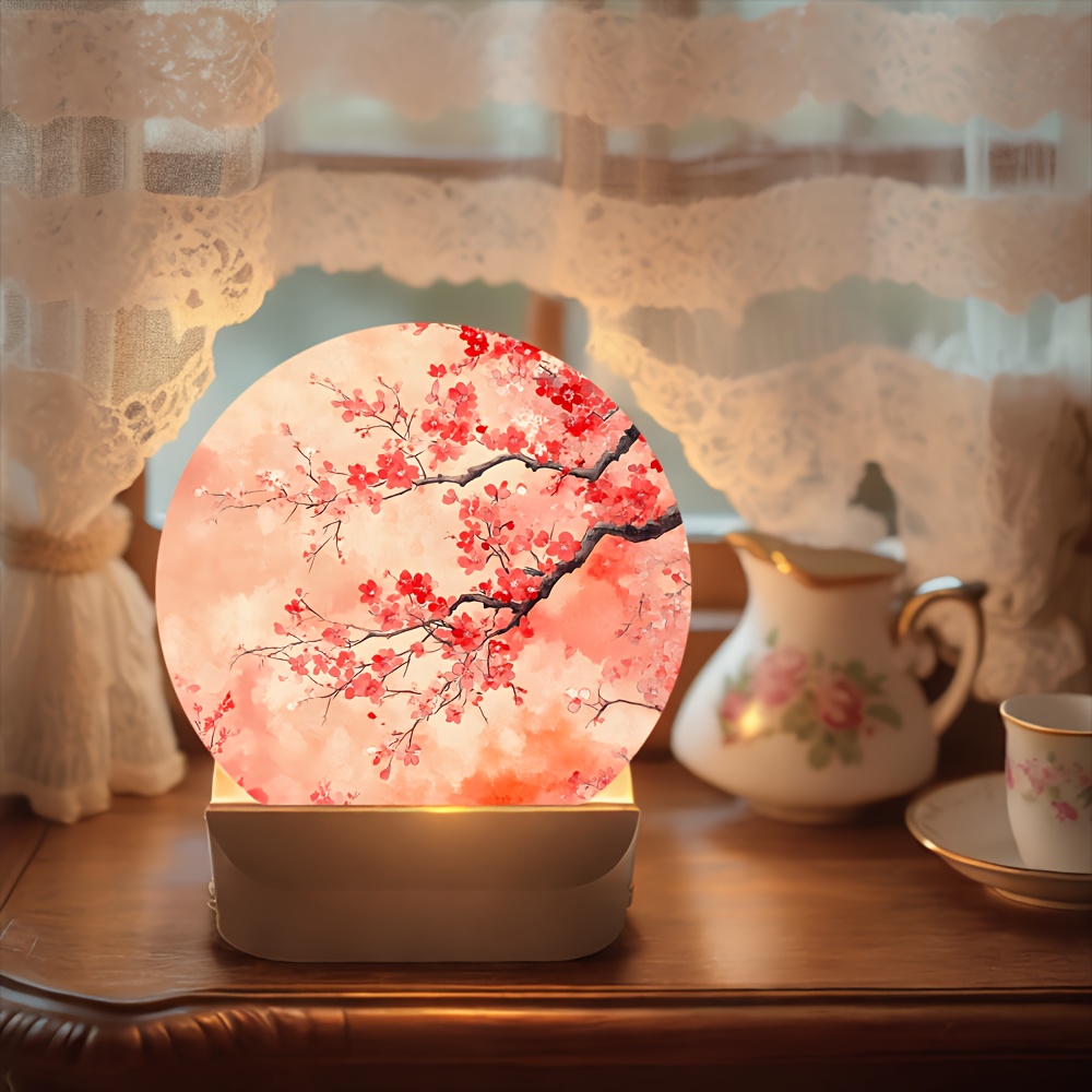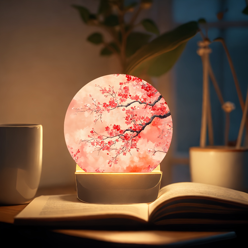 [Cherry Blossom Night Light] 1pc Japanese Cherry Blossom Night Light – Adjustable Brightness, Soft Pink Glow, Table Lamp for Bedside & Desk, Plug-Free Operation, Button Control, Durable Plastic, Japanese-Themed Decor (Ideal Gift, 2D Flat)