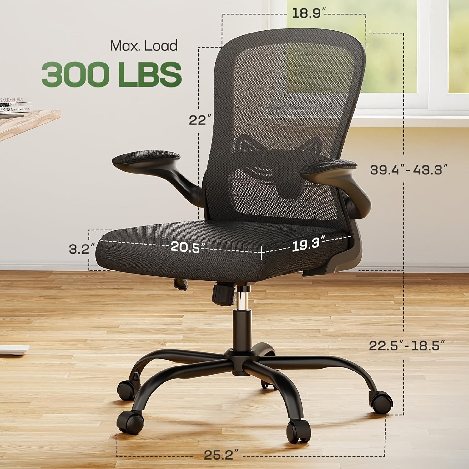 Ergonomic Laboratory Office Chair with Mesh Backrest, Adjustable Lumbar Support and Flip-up Armrests – Computer Desk Chair, Home Office Task Chair, Adjustable Footrest Under the Desk with Massage Rollers – Ergonomic Footrest with 3 Height Levels and 30° Tilt, Suitable for Home Office and Laboratory