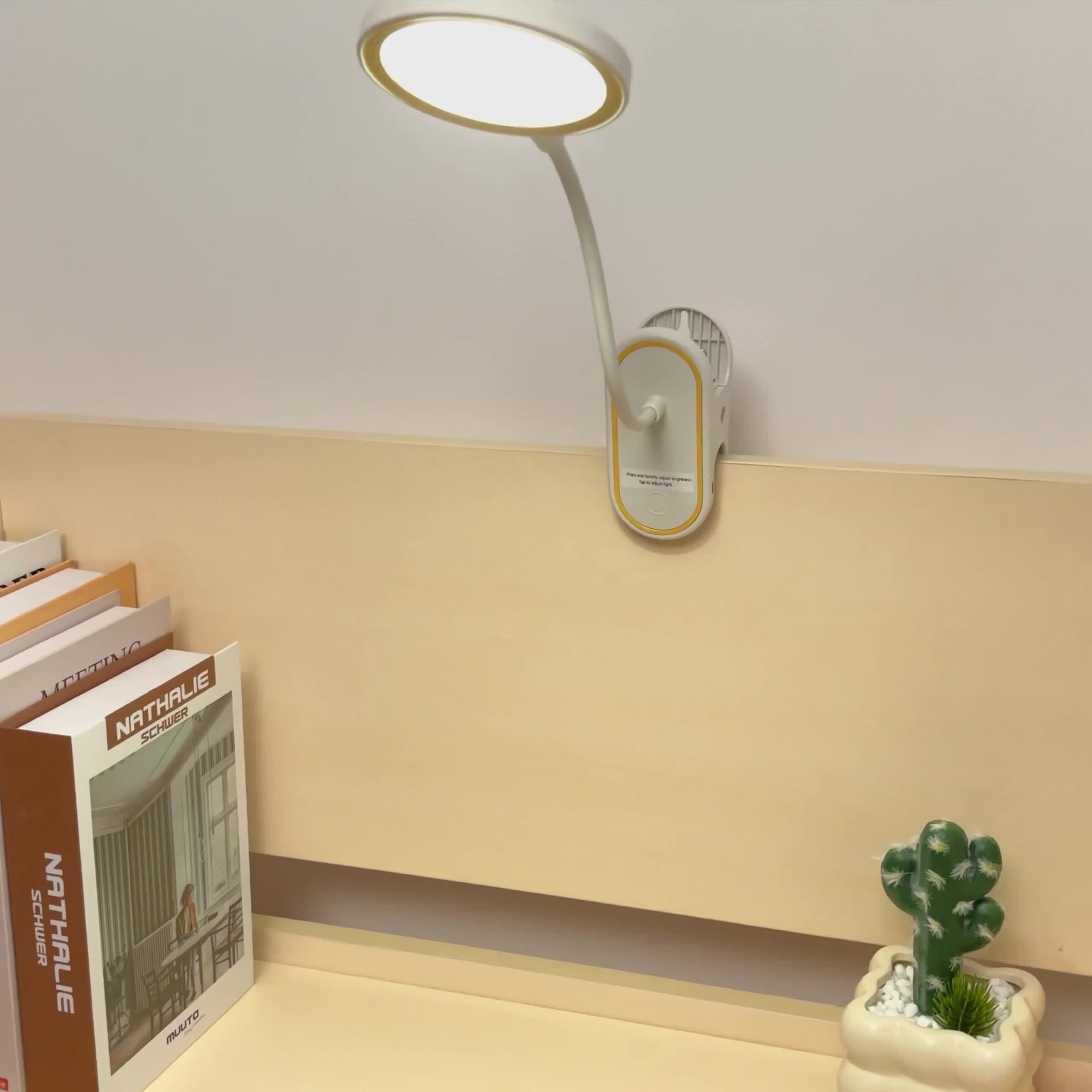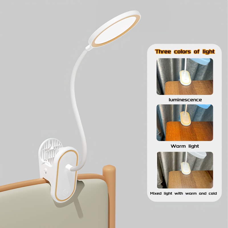 Eye Protection Clip Light with Adjustable Color Temperature & Dimmable Brightness, USB/Battery Powered Portable Clip-On Reading Lamp with Touch Control, USB-Powered for Dorm, Office, Bedside – Ideal for Night Reading, Study, Gaming