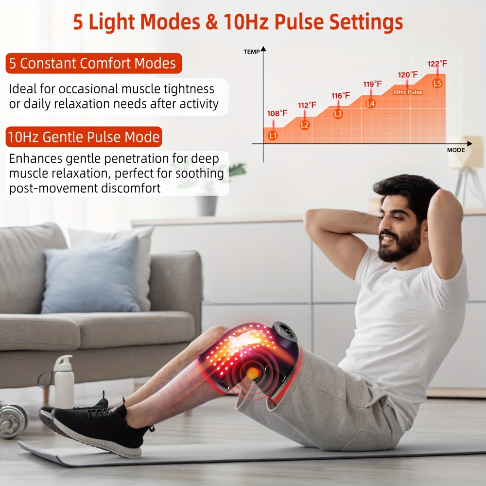 Fitness Massage Knee Brace – Red Light Relax For Body 660nm & 850nm Infrared Light, For Post-Workout Joint Discomfort Relief & Muscle Relaxation Recovery, 3 Vibration Massage Levels, 5 Red Light Modes, For Knee/Elbow/Shoulder With Extension Band
