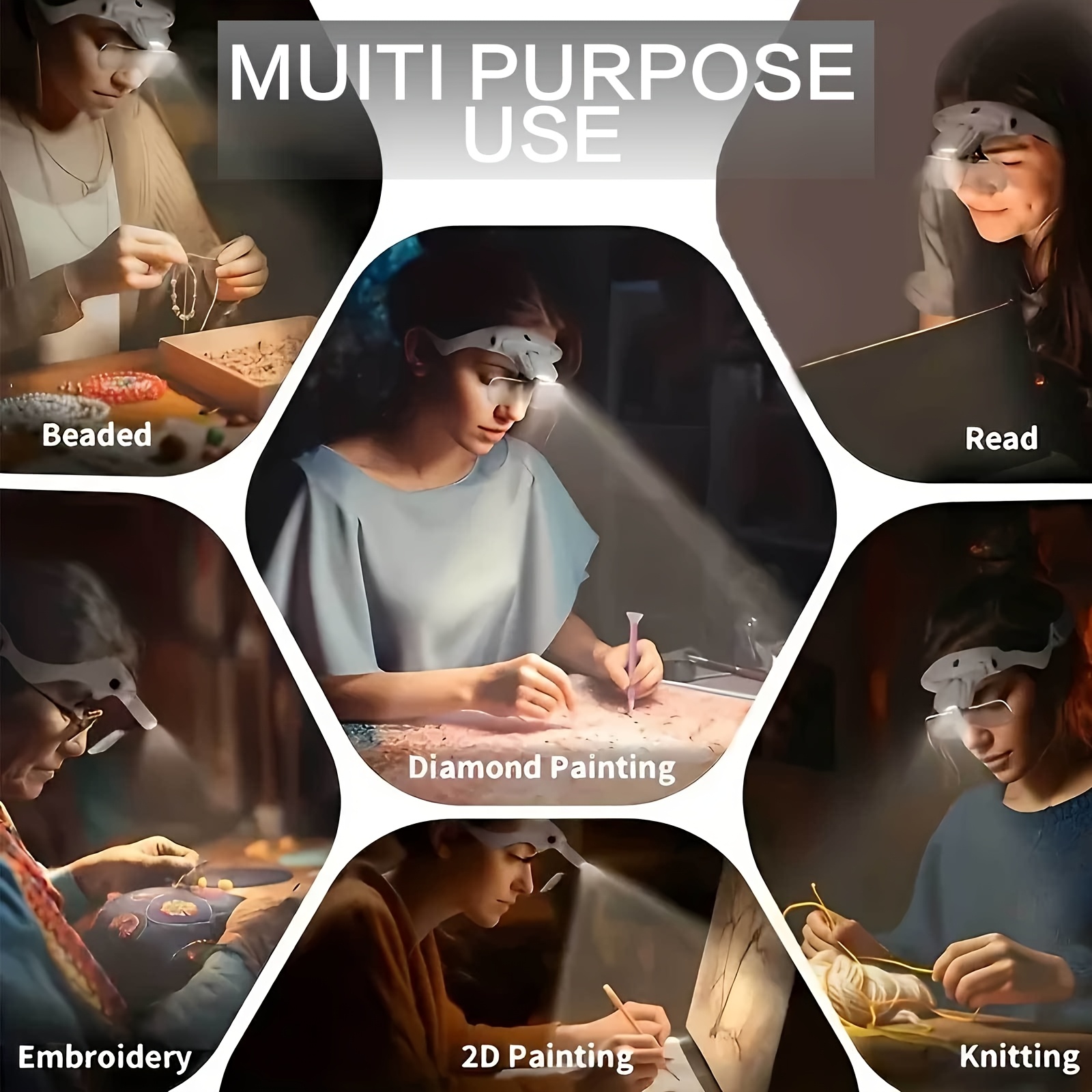 Head-Mounted Magnifier with LED Illumination, Adjustable Headband, 5 Interchangeable Lenses 1.0X/1.5X/2.0X/2.5X/3.5X, for Reading, Maintenance, Jewelry Processing, Electronics Maintenance