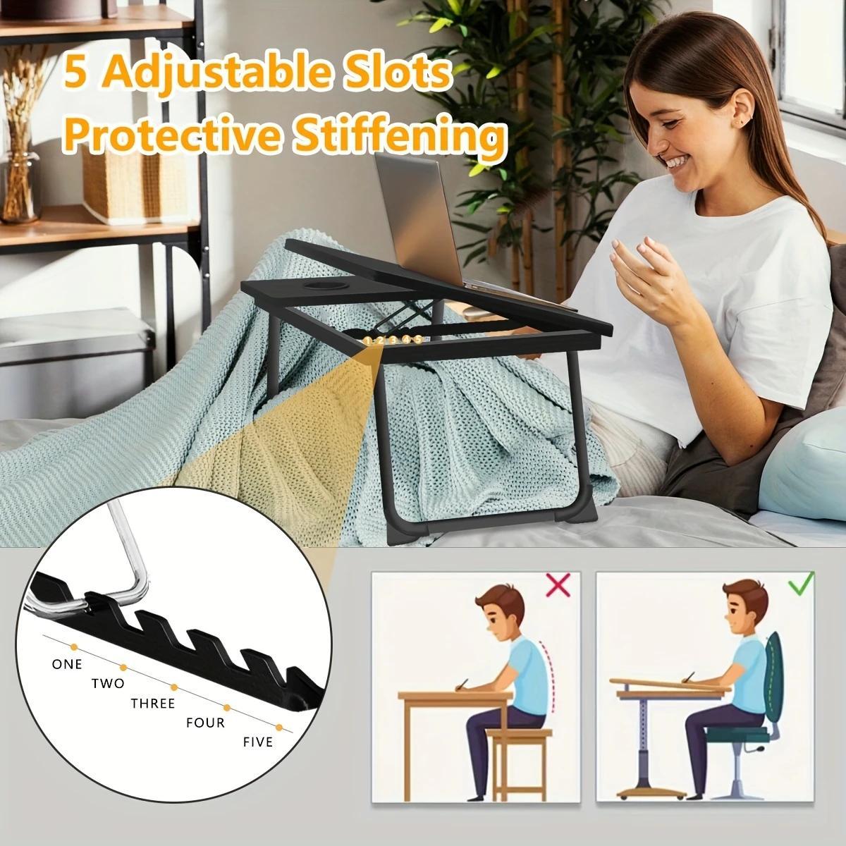 Height Adjustable Black Portable Folding Table, Laptop Desk, Sofa Table, Tray Bed Table With Cup Holder For Reading, Writing, Eating And Drinking