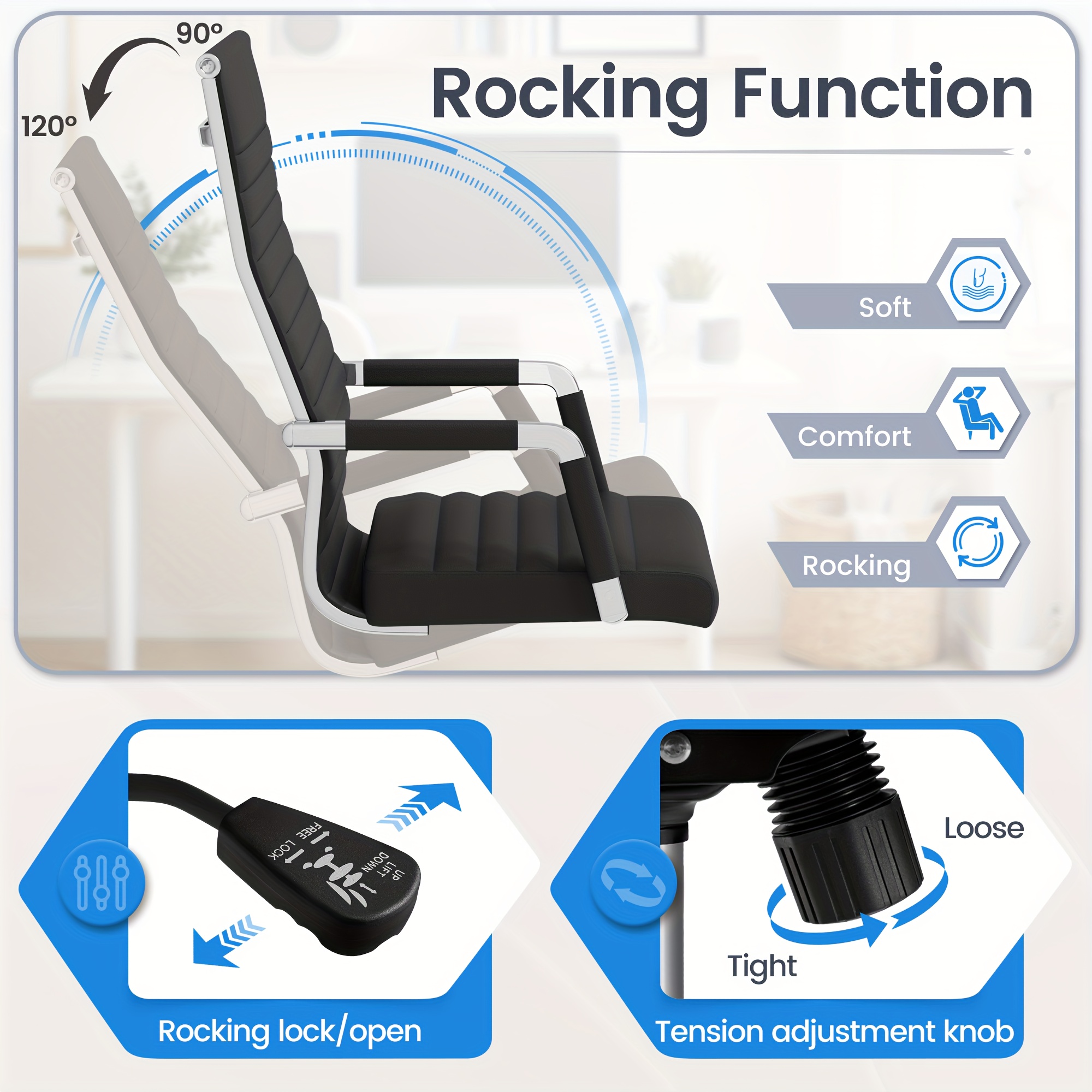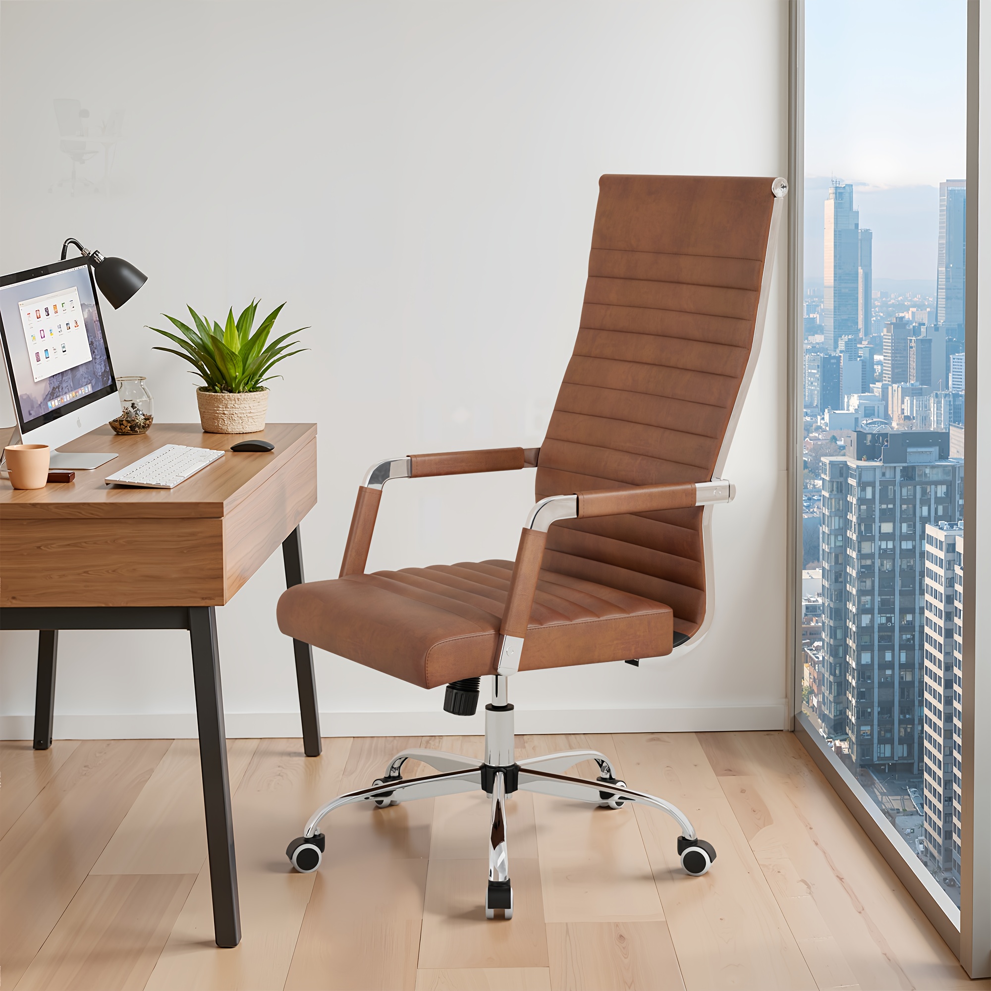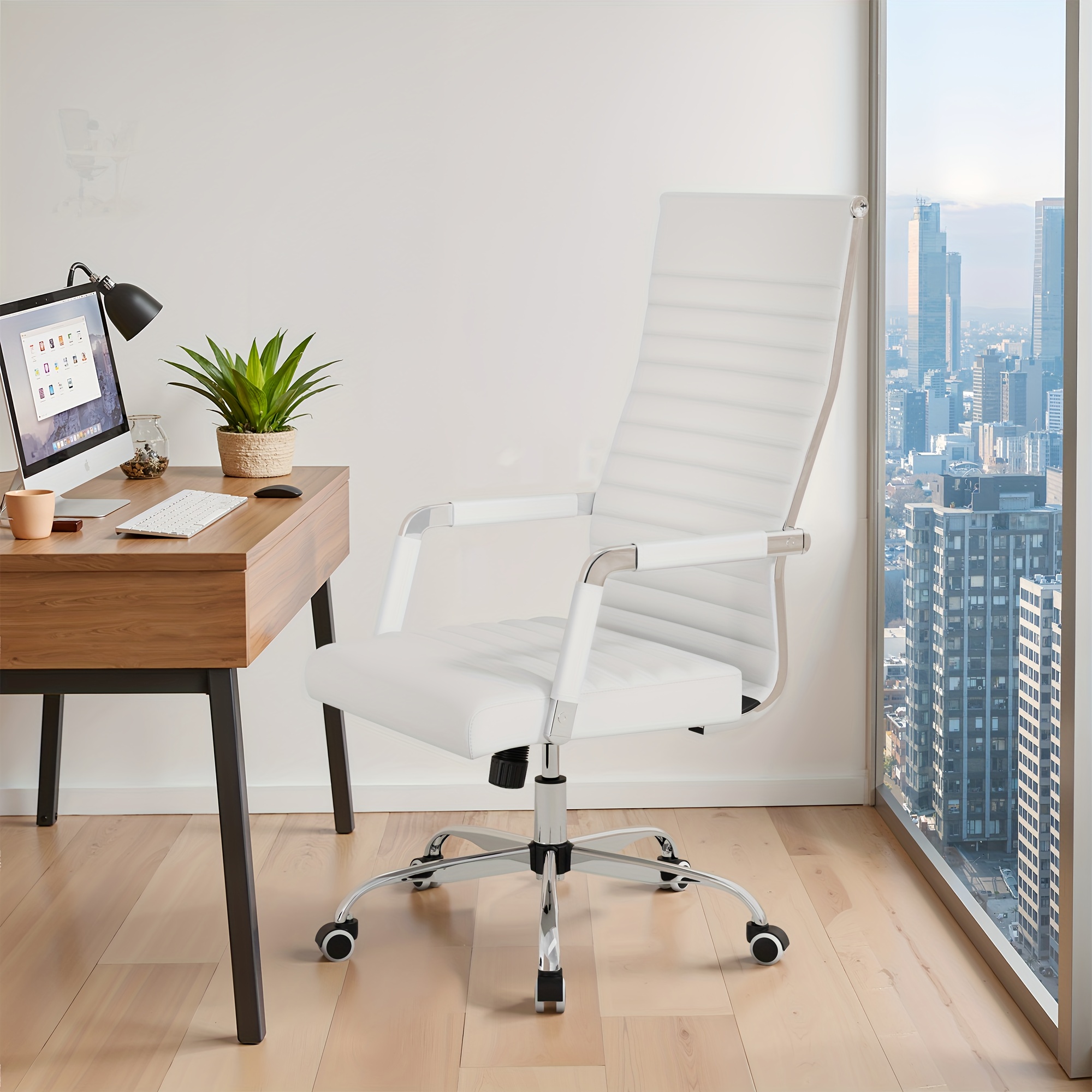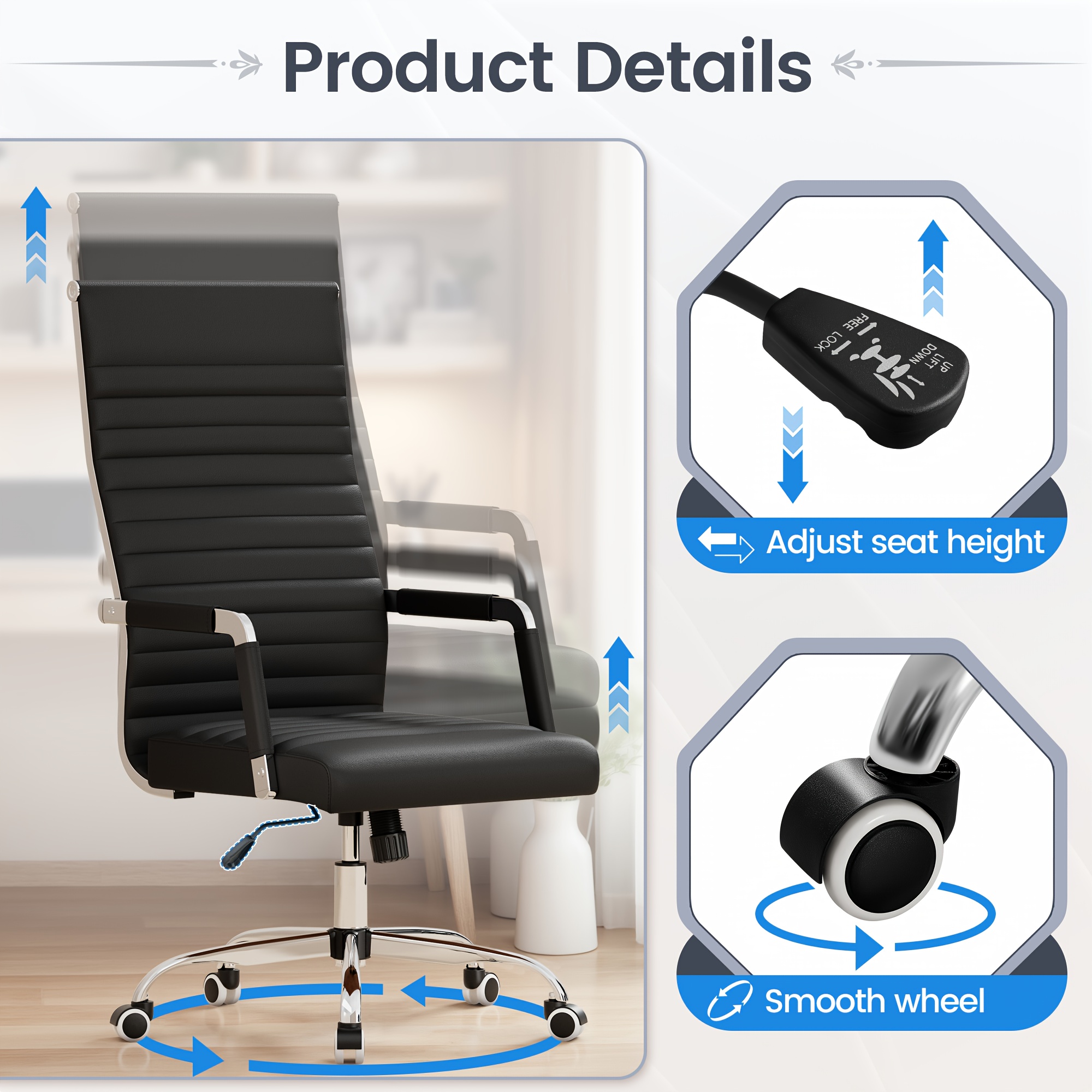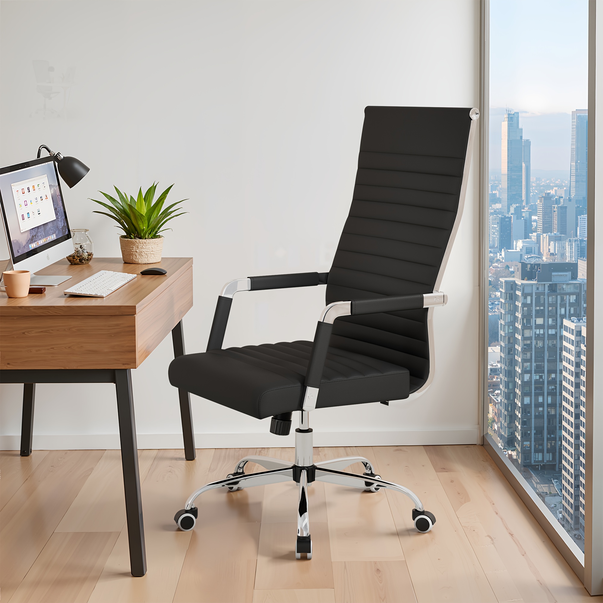 Home Office Chair Ribbed High Back Executive 360° Swivel Computer Desk Chairs with Wheels And Armrests Soft Padded Adjustable Height Modern Conference