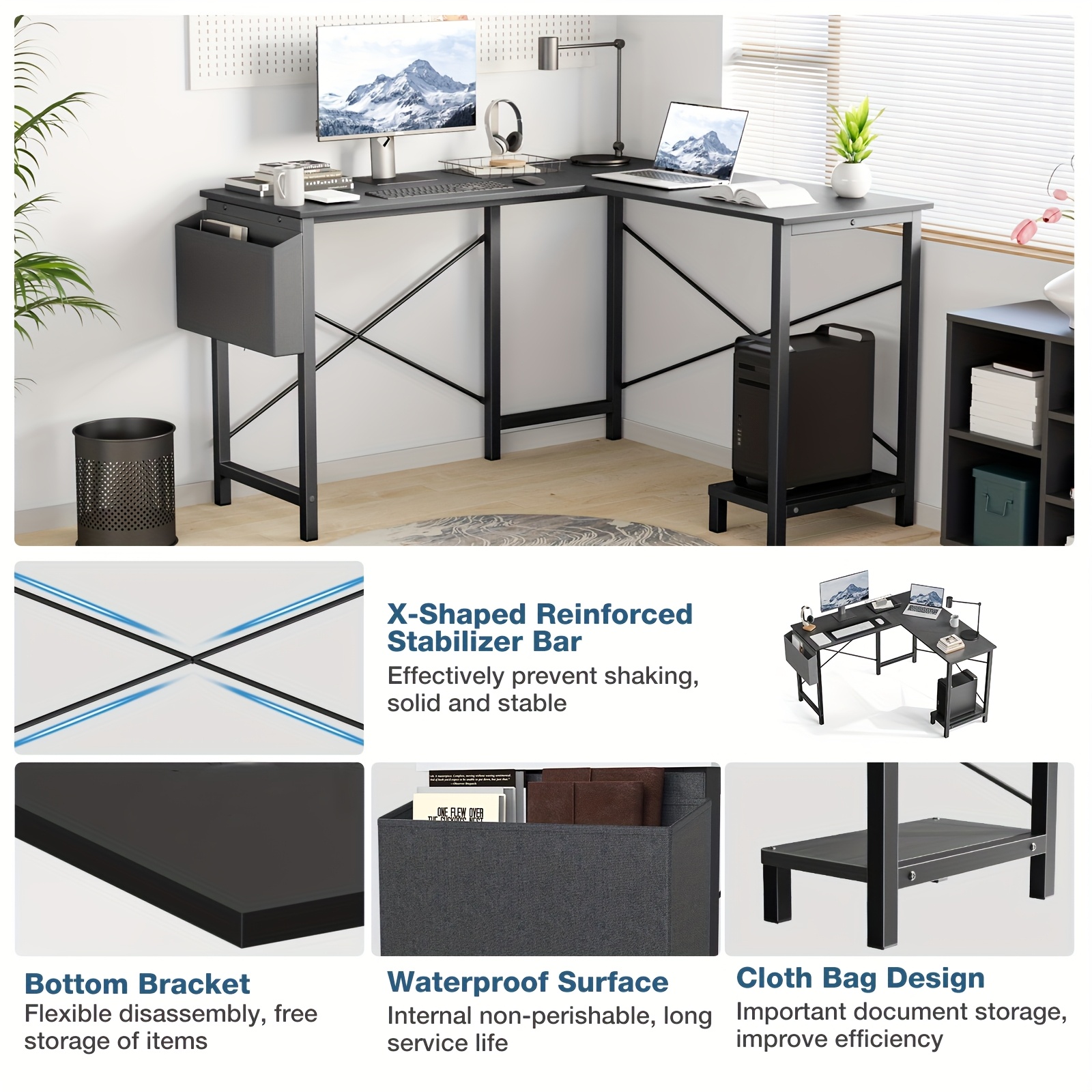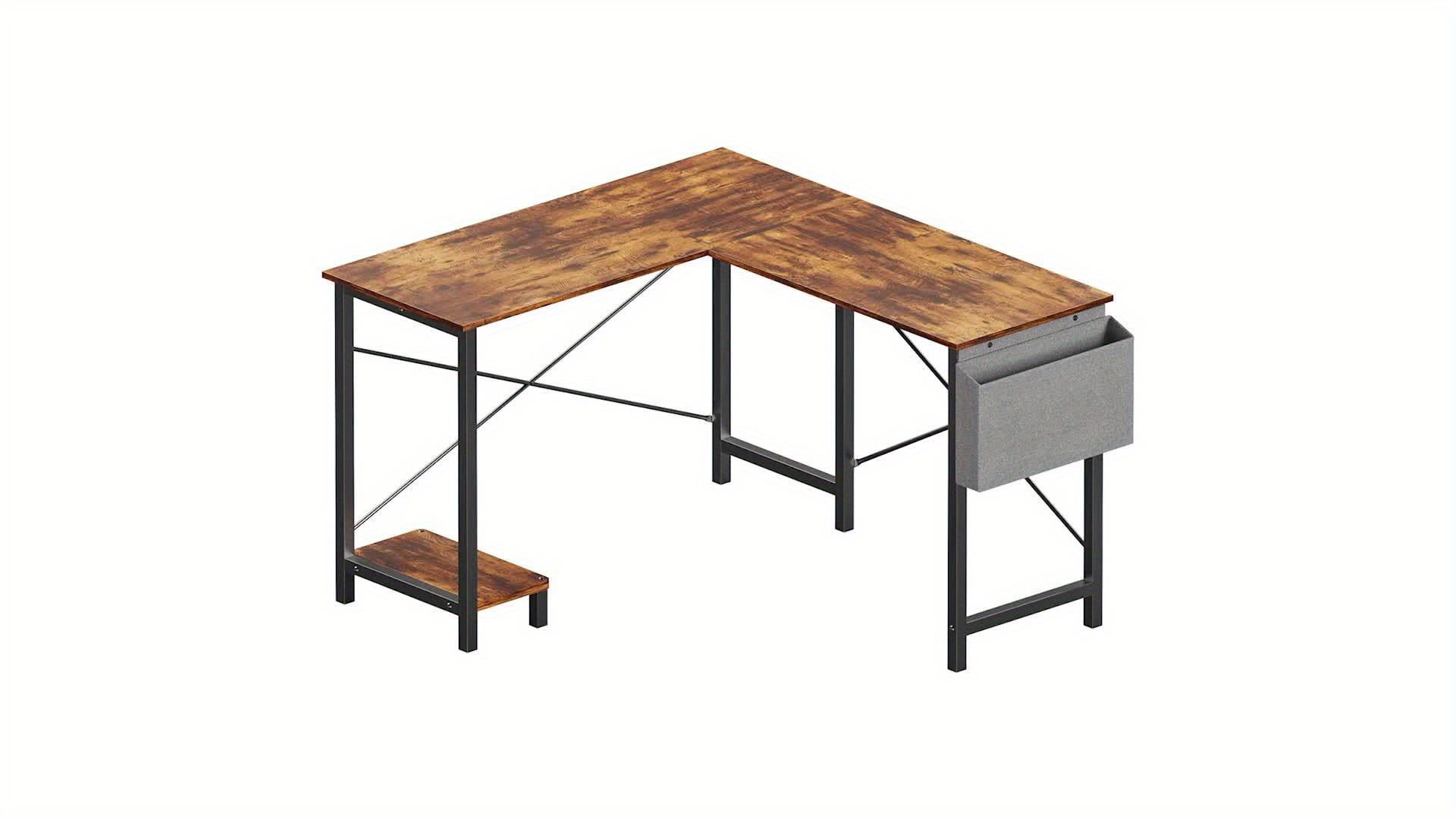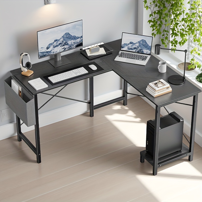 L-Shaped Computer Desk, Wooden Corner, PC Computer Desk with Storage Pocket for Home, Office And Game Room, Black