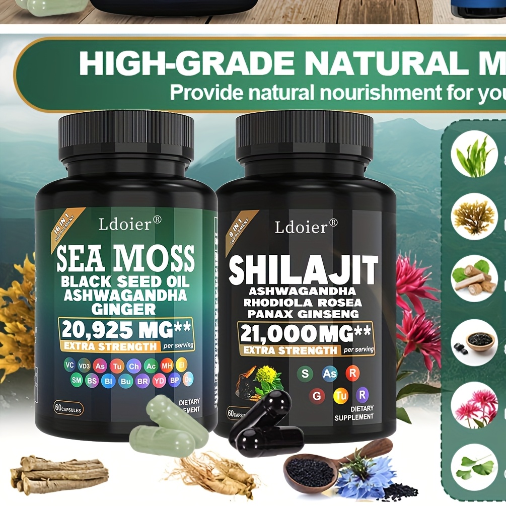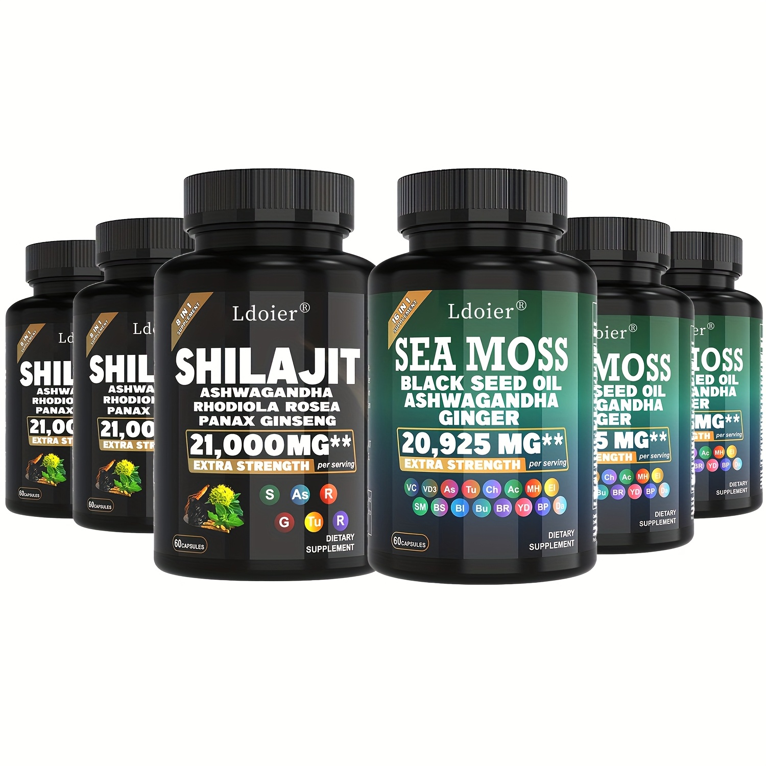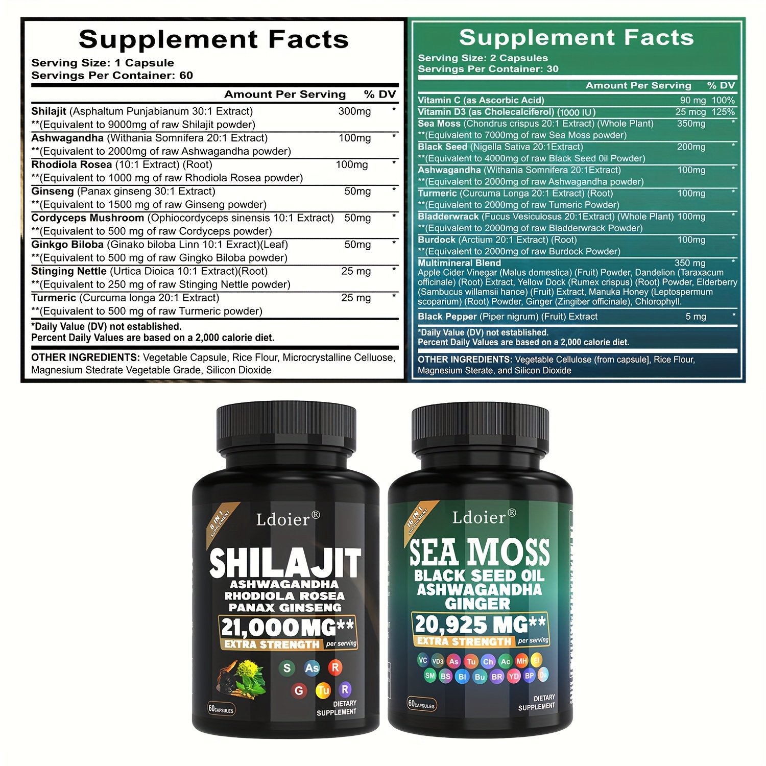 Ldoier 2025 – New 240 Capsules – Seaweed 7000 Mg, Black Seed Oil 4000 Mg, Aloe Vera 2000 Mg, Pure Himalayan Ginger And Shilajit 9000 Mg, Rhodiola 1000 Mg, Ginseng 1500 Mg, an Integrated Health Supplement
