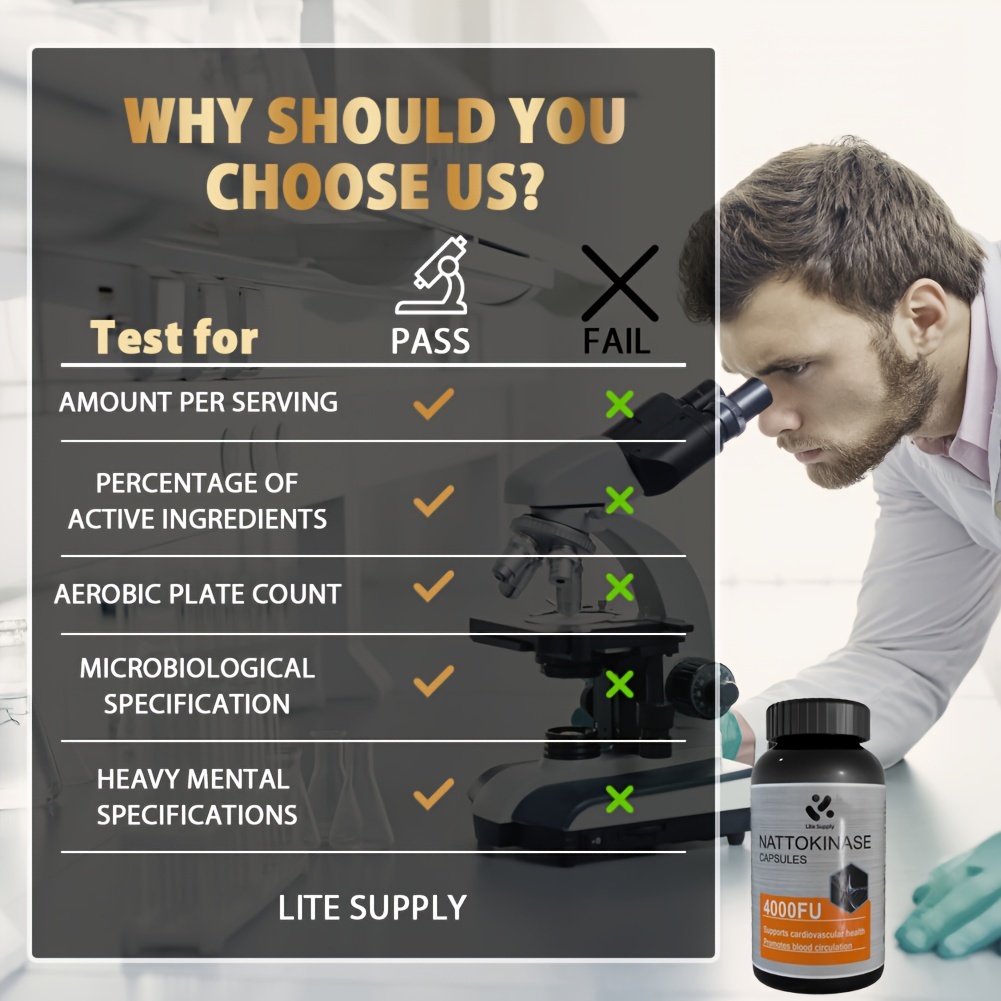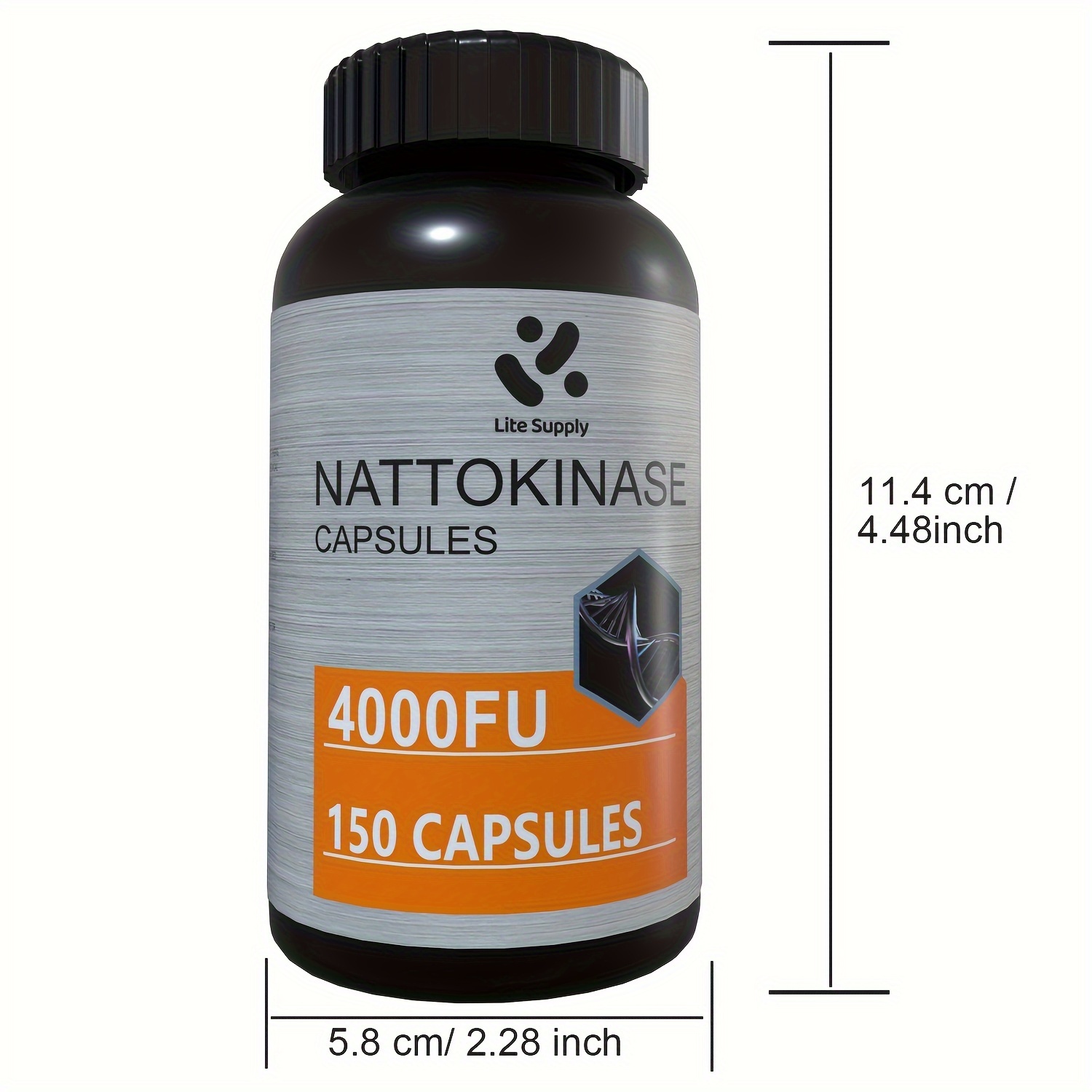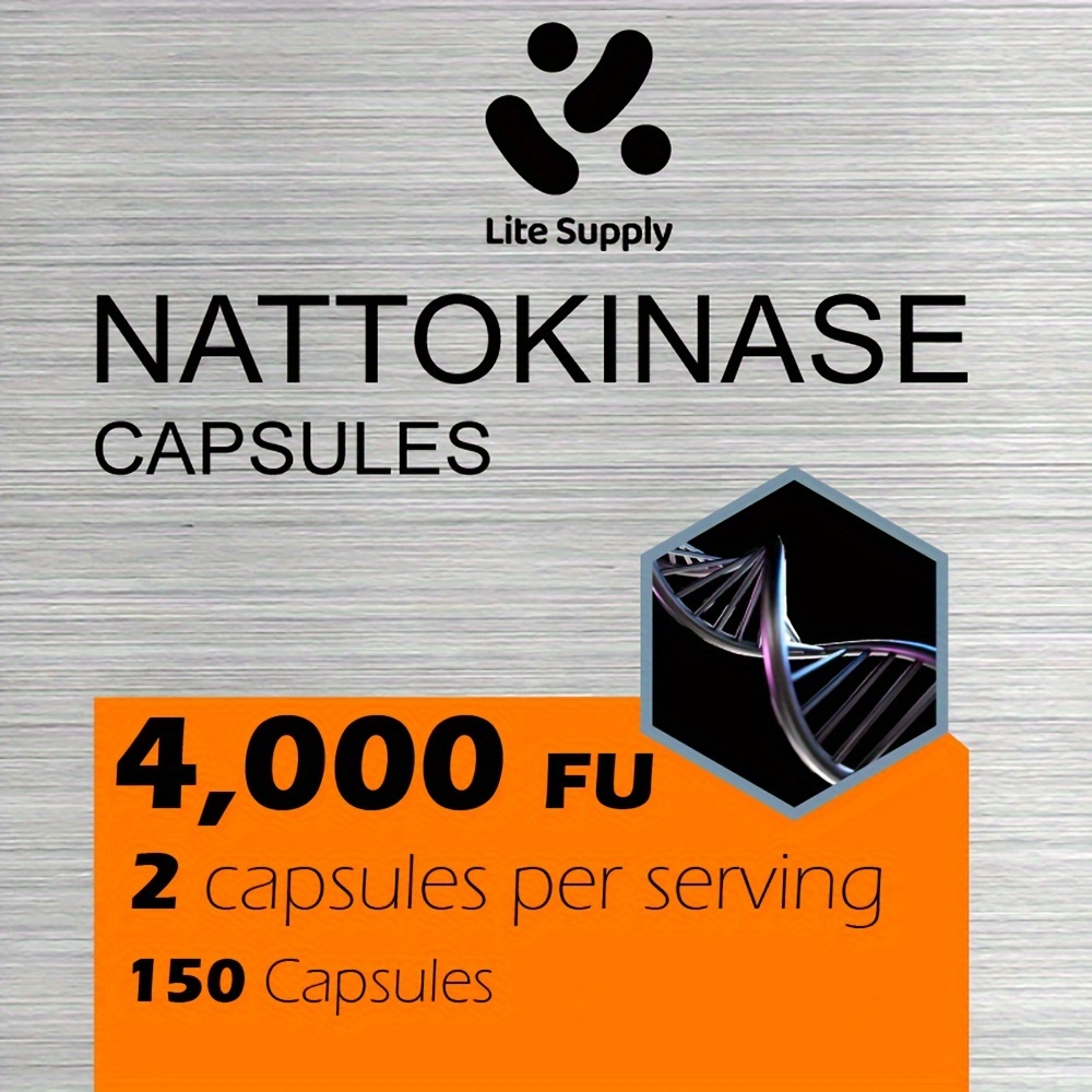Lite Supply Nattokinase Supplement 4000 FU per Serving (150 Capsules) – Traditional Japanese Enzyme for Fibrin Breakdown, Cardiovascular Health & Blood Clot Dissolver – Allergen-Free Vegetarian Formula
