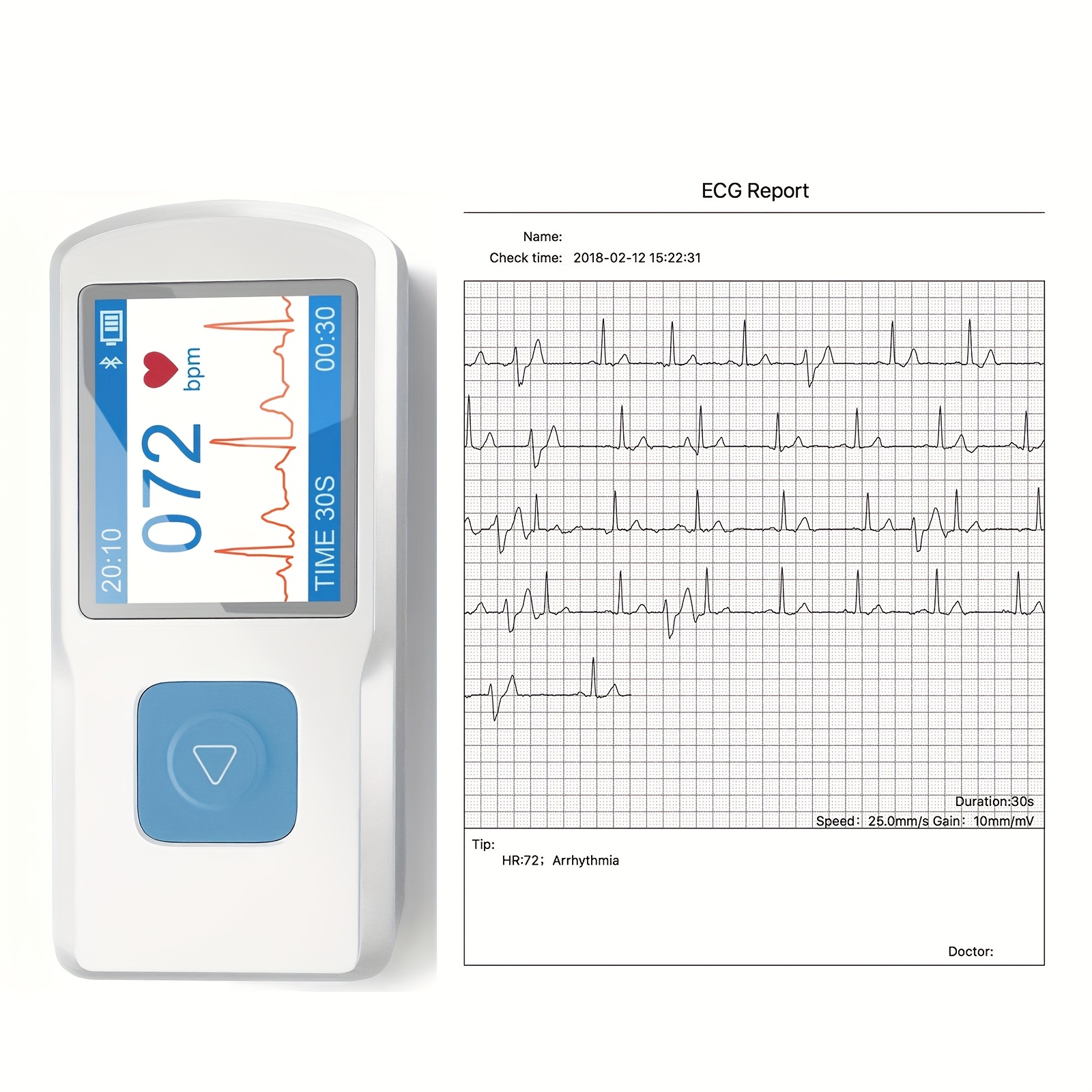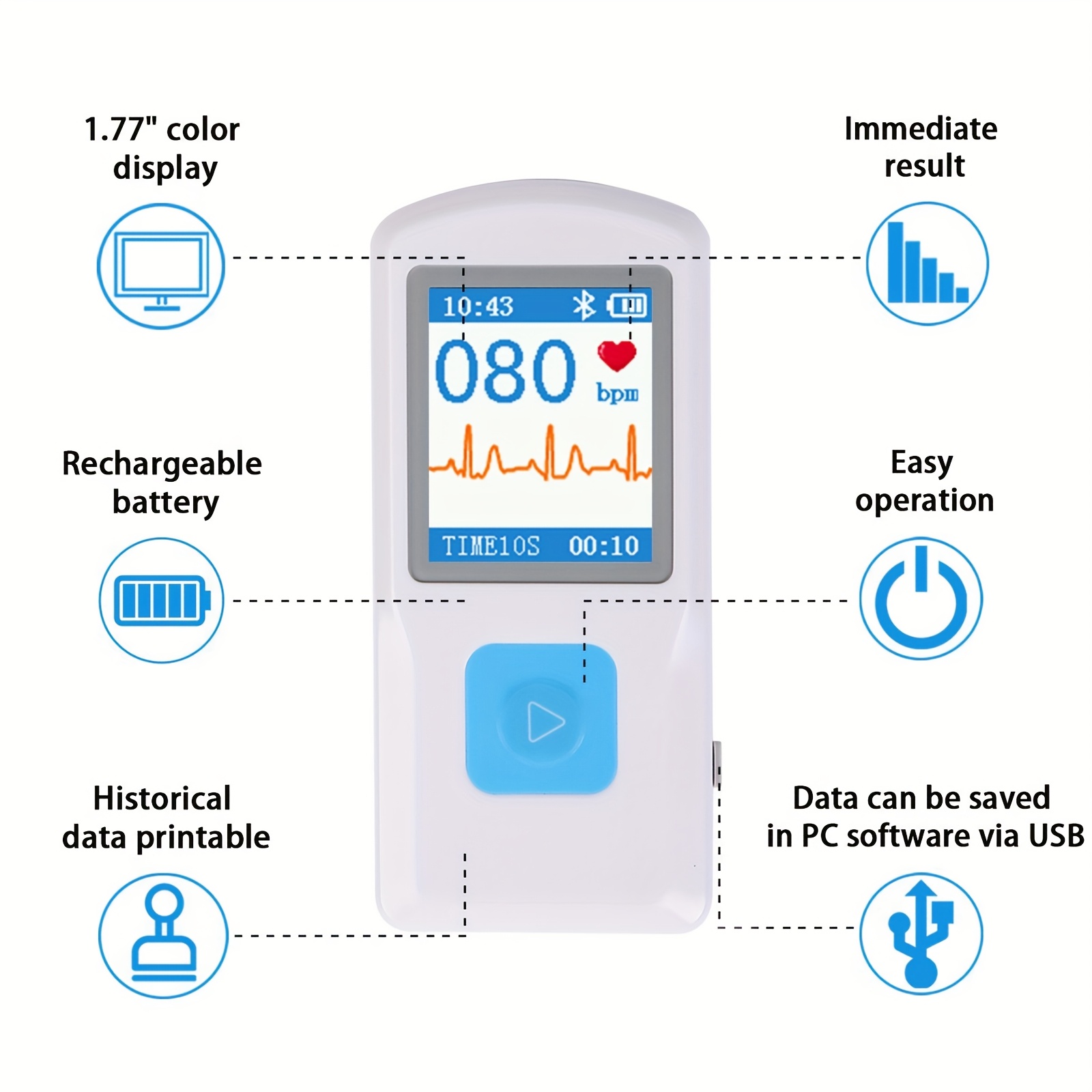 Portable ECG Monitor, FDA Cleared, Stand-Alone Device With LCD Screen And Storage, Record ECG And Heart Rate Anytime Anywhere, No Subscription Required