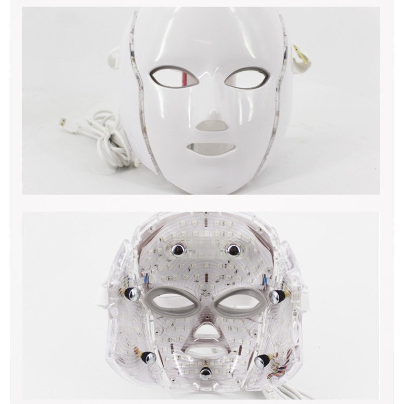 Portable Red Light Facial Mask with 7+1 Color LED Light Suitable for,, & Light Beige – USB- for Use, Wrinkle & Phototherapy Device