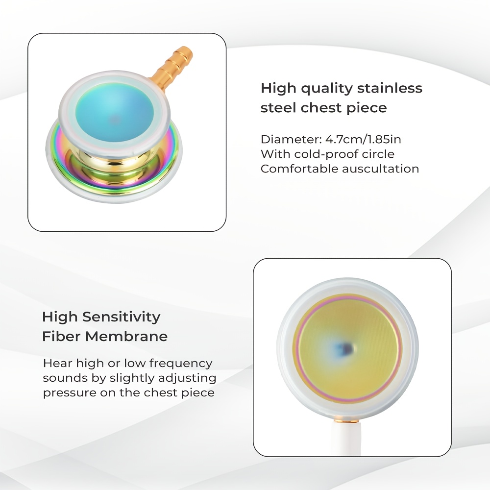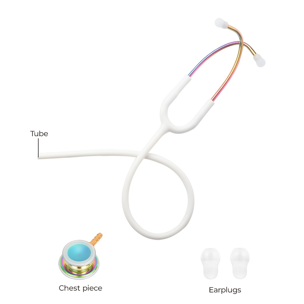 Professional Dual-Sided Stethoscope for Doctors & Nurses – High Sensitivity, Colorful Plated Design with Rainbow Diaphragm, Durable Alloy Frame, Includes Extra Earplugs & Rubber Ring, 29.13in Length, Medical Auscultation Tool | Colorful Stethoscope | Sensitive Diaphragm