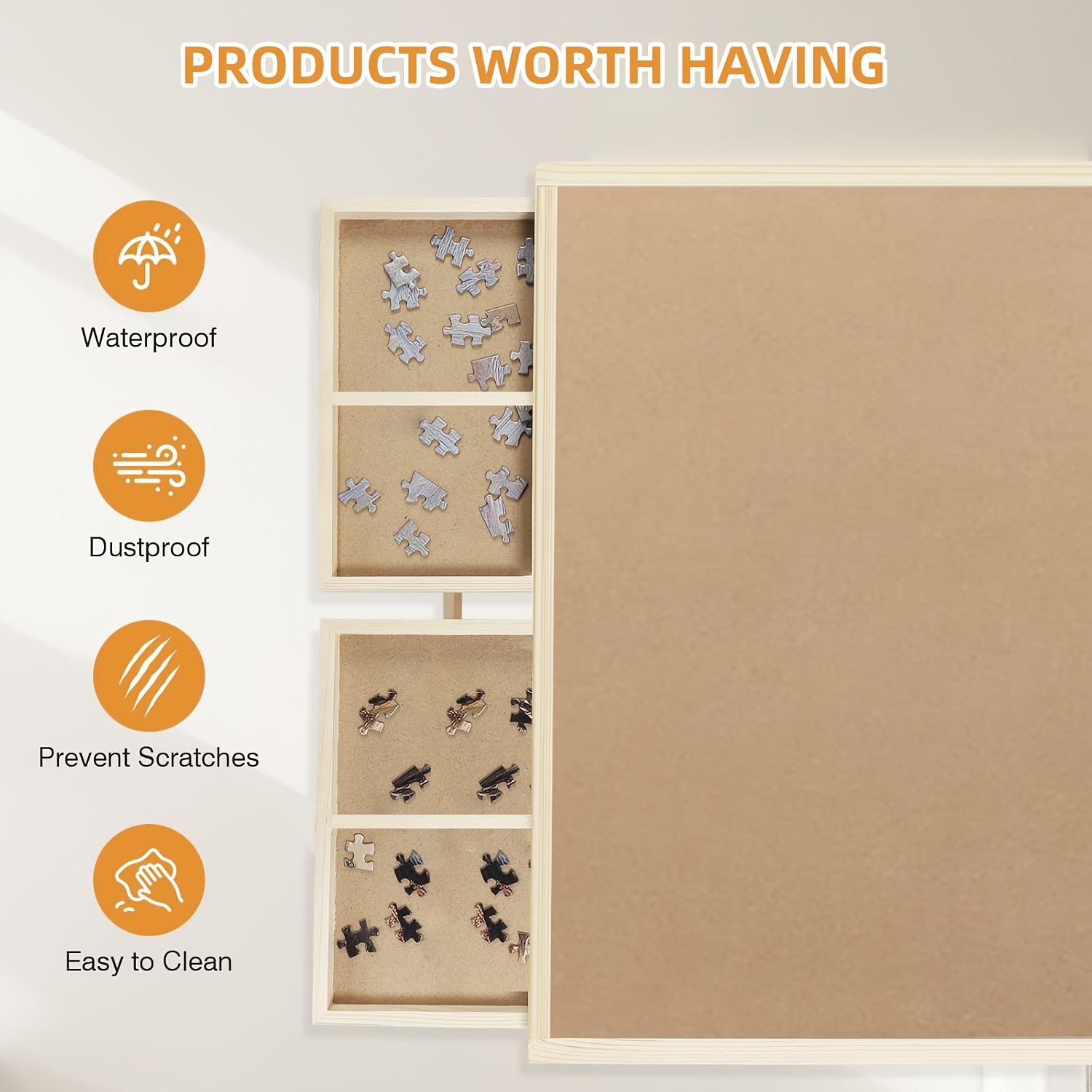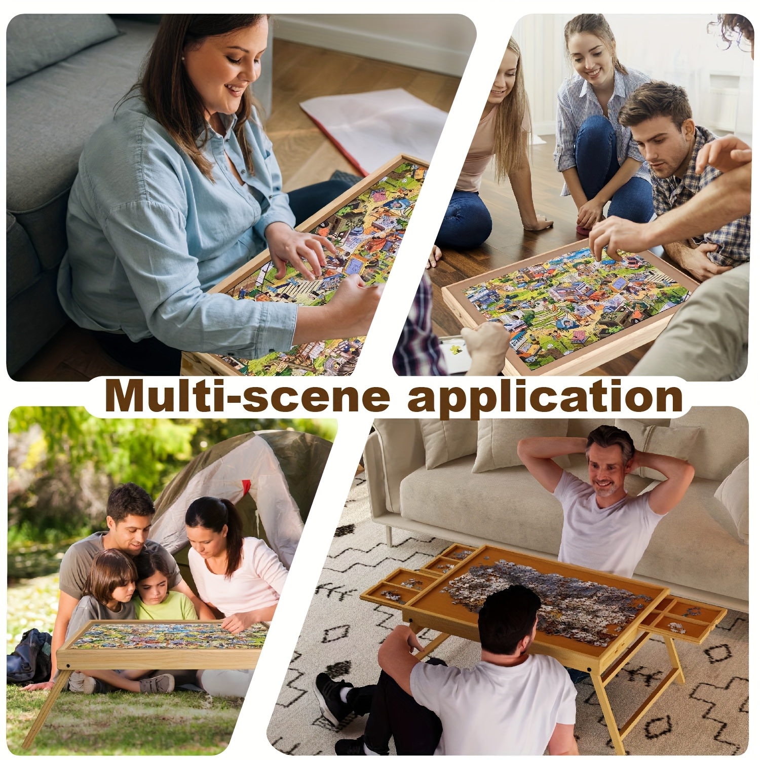 Puzzle Table with Folding Legs, Wooden Puzzle Table with 4 Drawers And 16 Grids, Portable Enlightenment Board for Storage And Sorting – 1000pcs Puzzle Table School Supplies