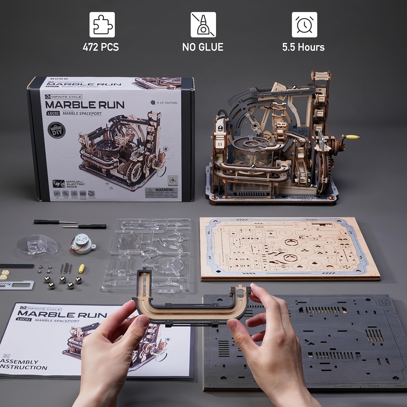 [STEM 3D Wooden Puzzle] ROBOTIME STEM Educational 3D Wooden Puzzle for Adults | Marble Run Spaceport Model Kit, Building Model