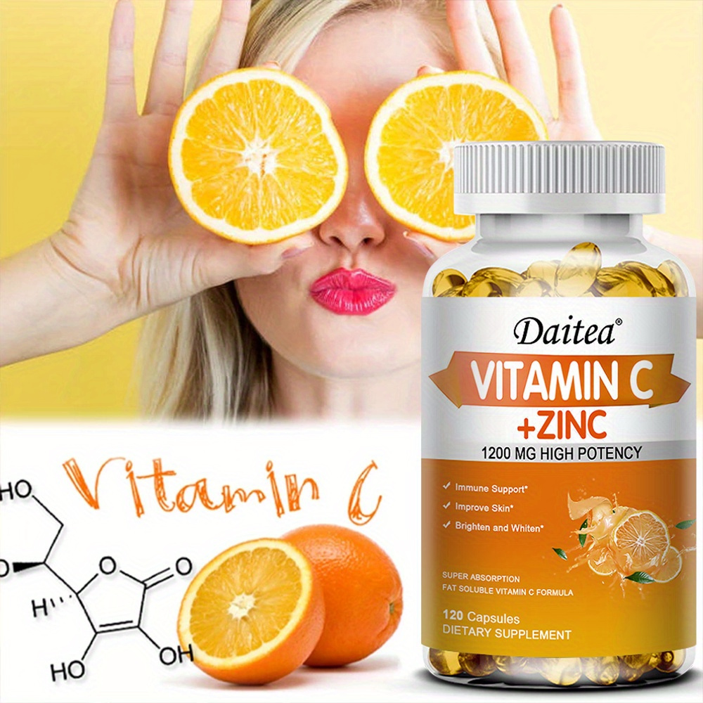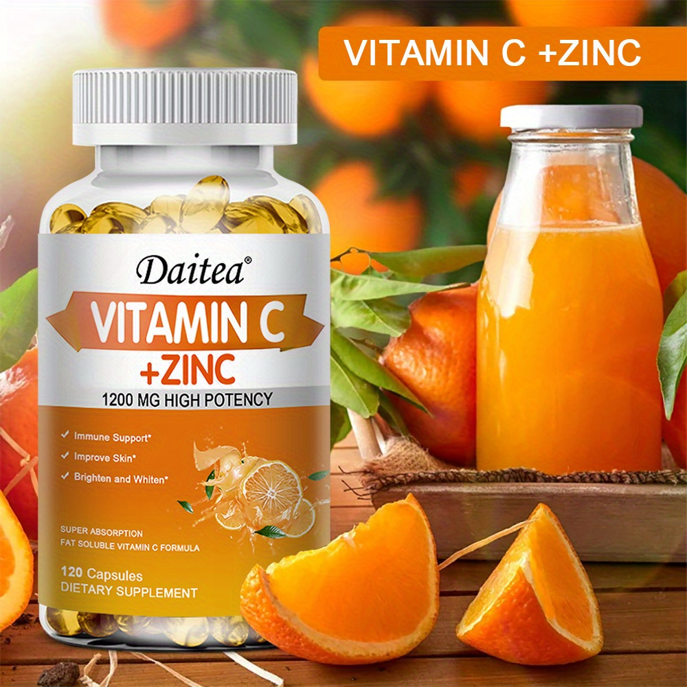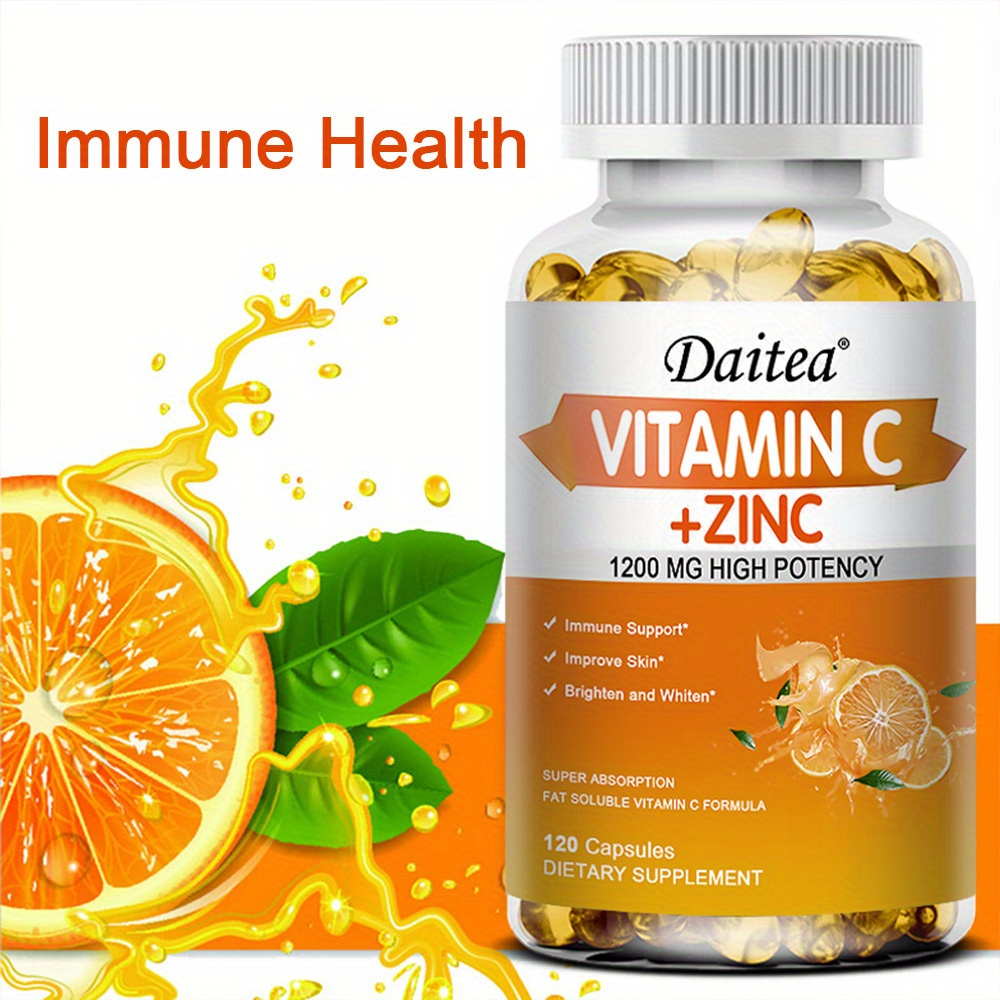 Vitamin C With Zinc Supplement Capsules – 1200mg Vitamin C, 20mg Zinc For Immune Support – 120 Softgels