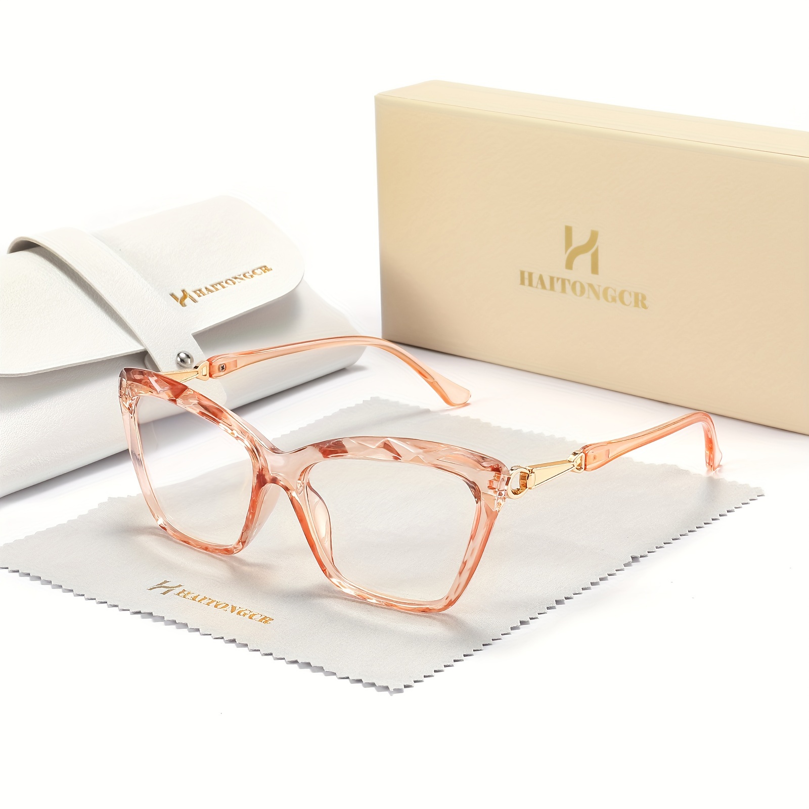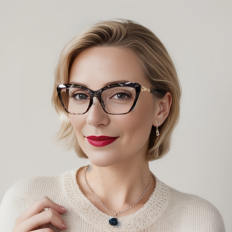 Women’s Frameless Cat-Eye Glasses – Semi-Framed Square Shape with Green/Black/Gray Tinted-like Effect, HD Resin Reading/Computer/Driving Lenses, Case & Cloth Included, Non- Eyewear for Vision