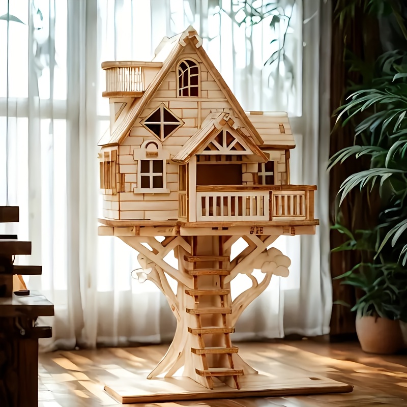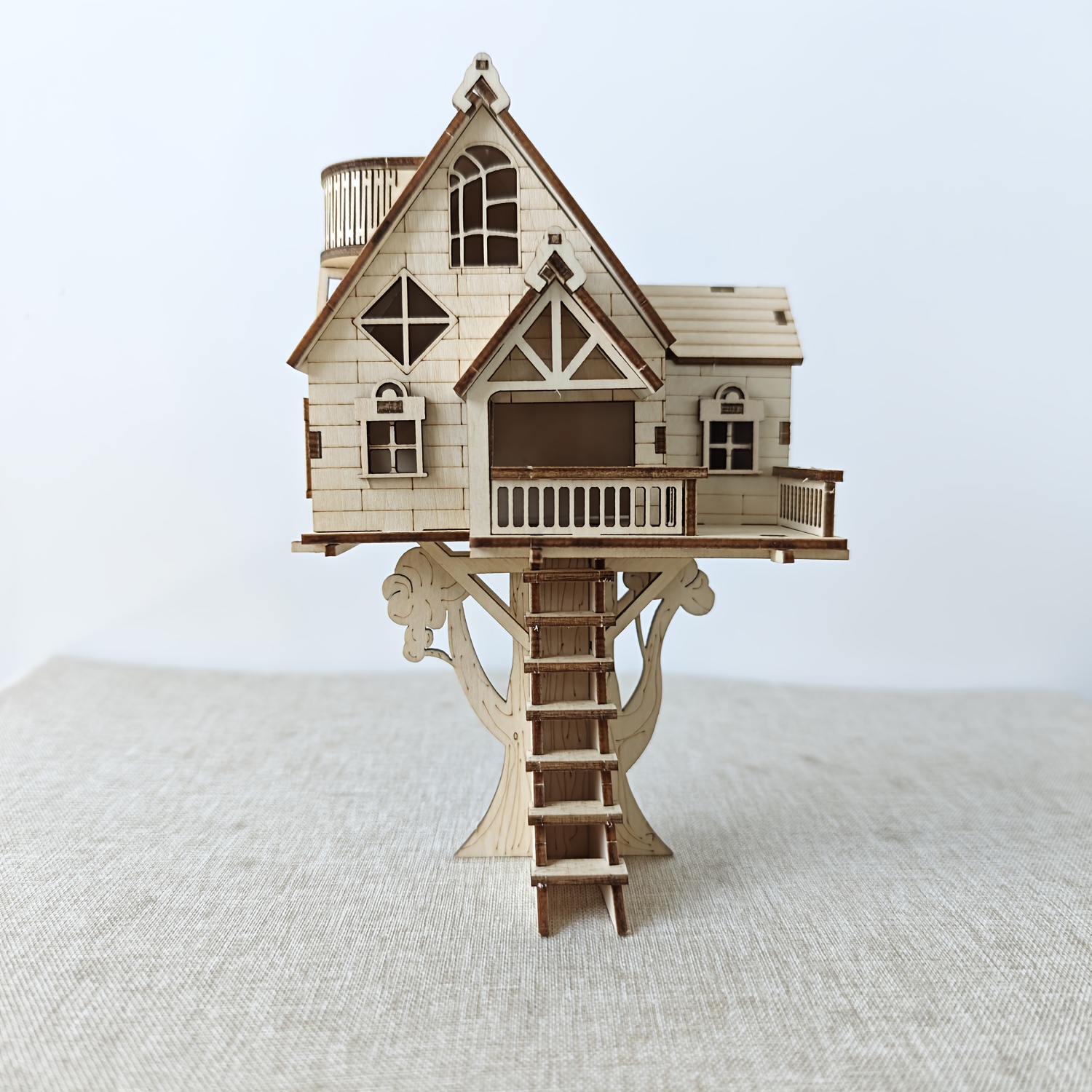 [Wooden Treehouse Model Kit] DIY Wooden Treehouse Model Kit – 3D Puzzle Building Set with Ladder, Rope, and Window Details, Ideal for Christmas and Halloween Gifts, Wooden Construction, Educational and Creative Playset, Educational Toy | Wooden Construction | Detailed Craftsmanship, Wooden Treehouse